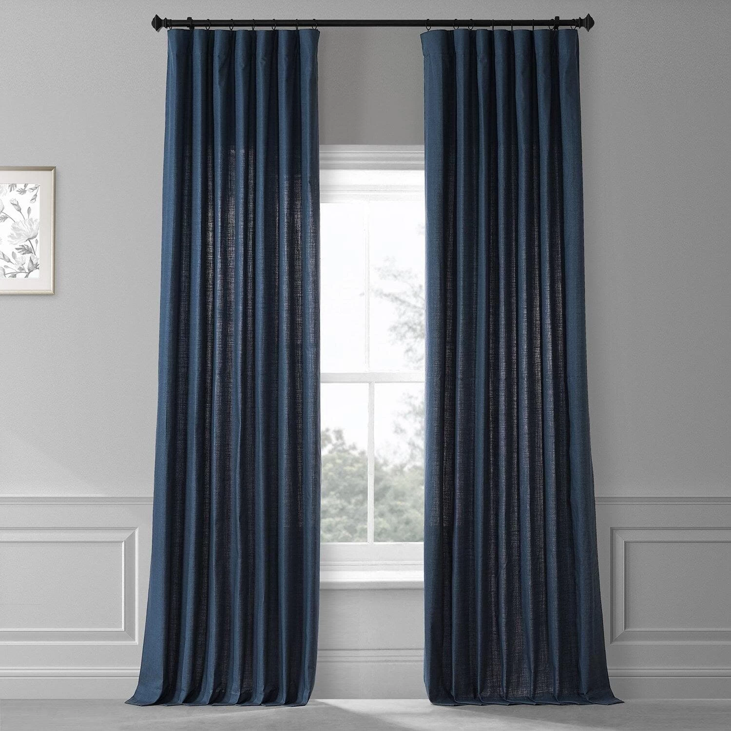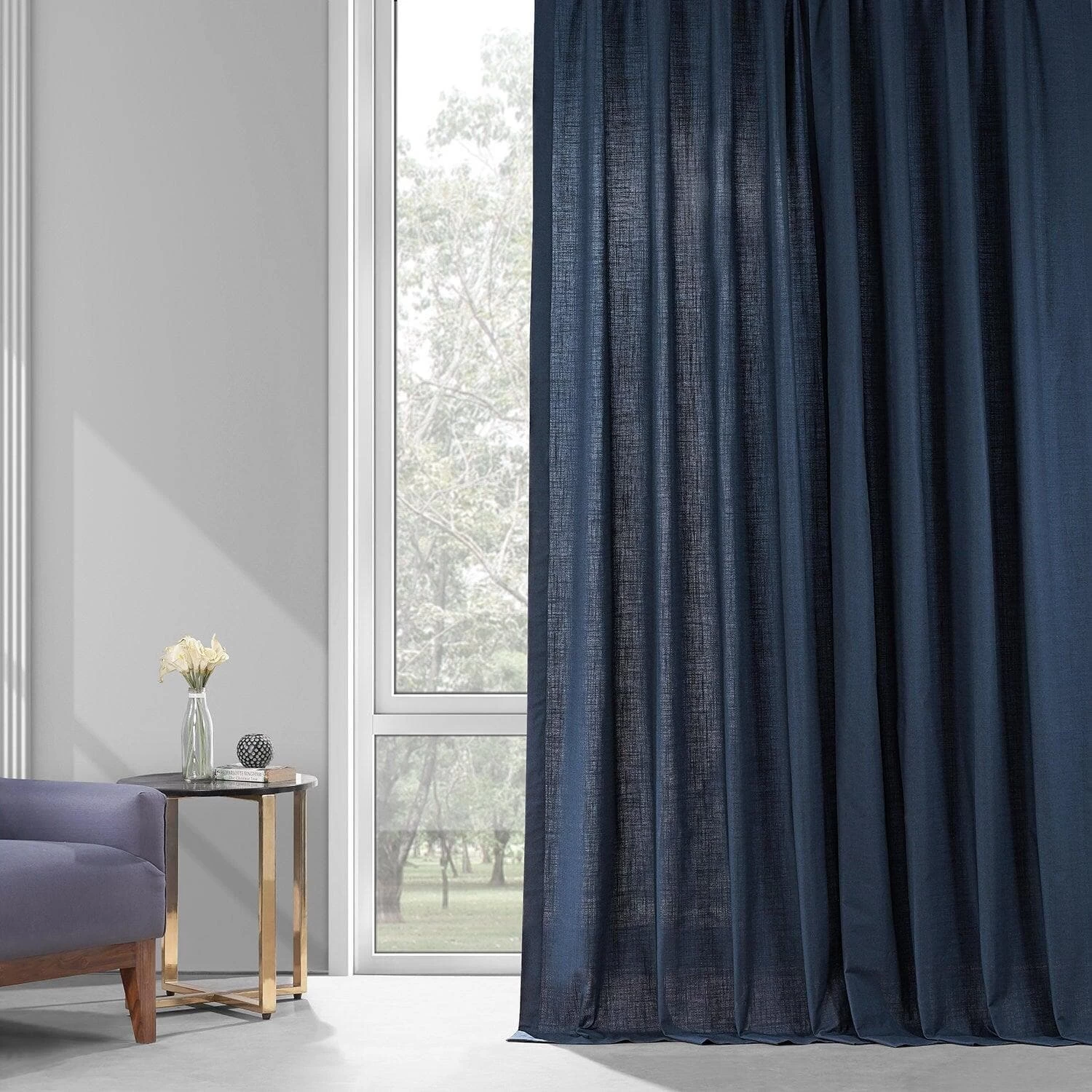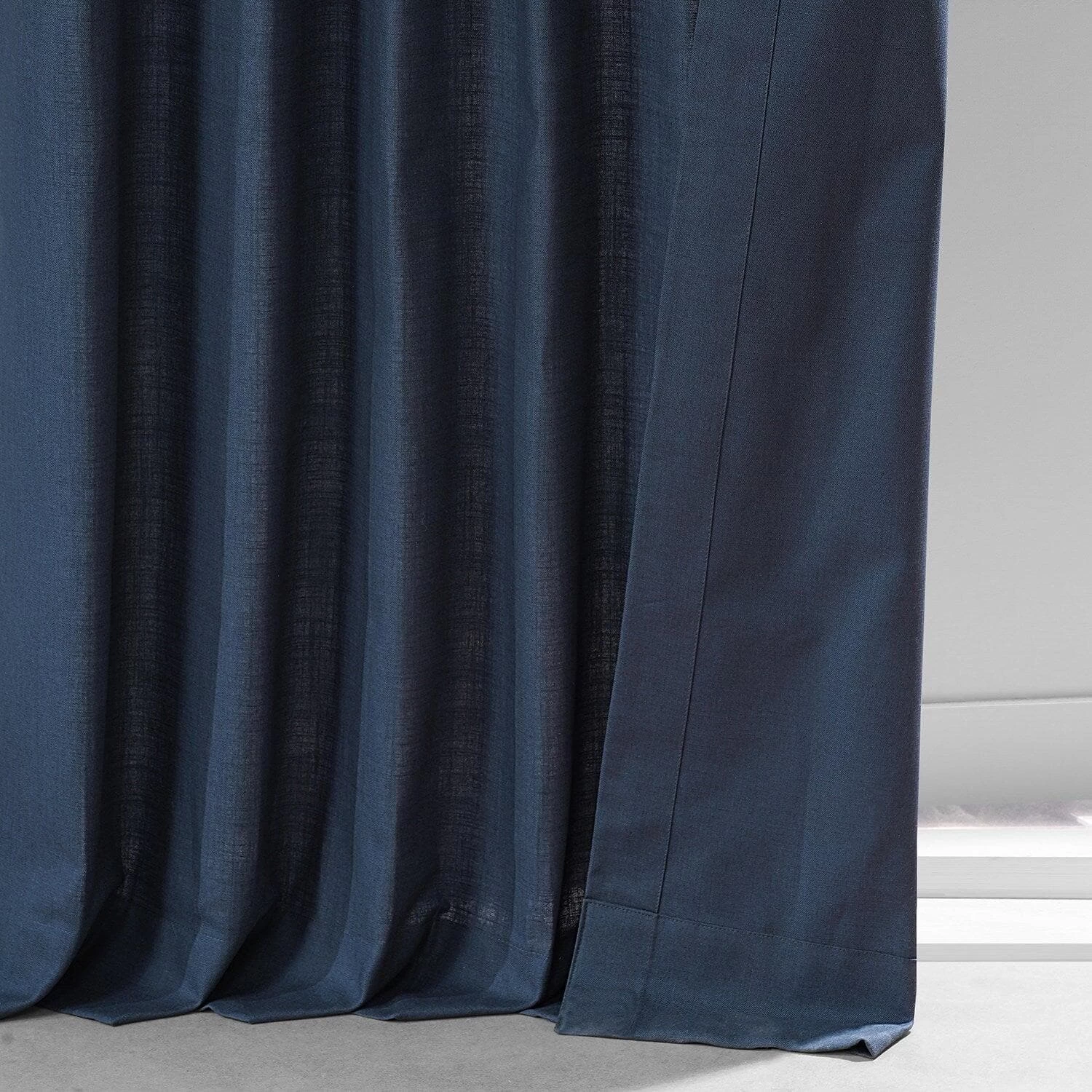 Noble Navy Dune is dark and deep true blue crosshatch. This textured cotton curtain is unlined and has no backing.