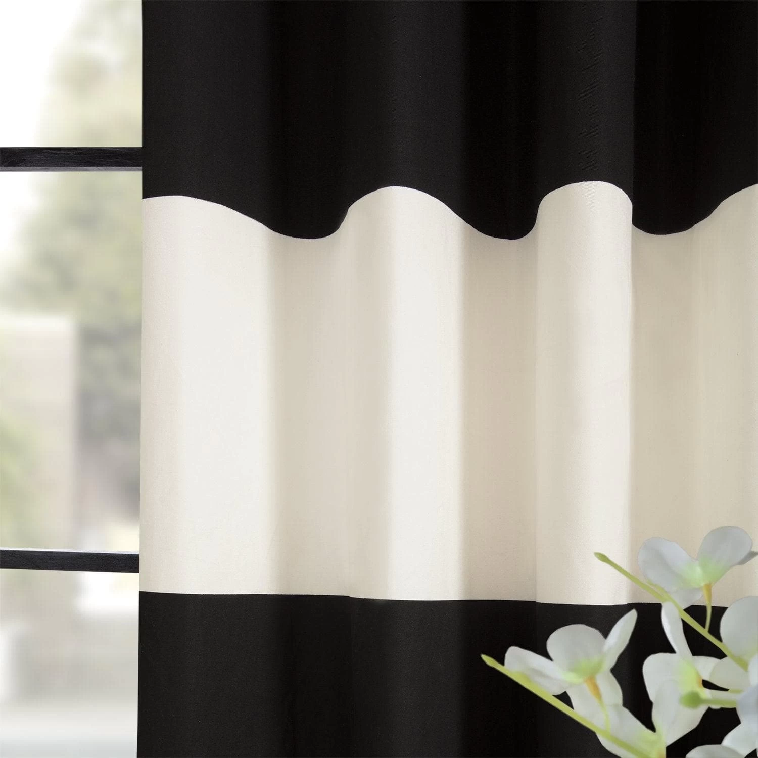 Onyx Black & Off White Horizontal Striped Grommet Printed Cotton Curtain