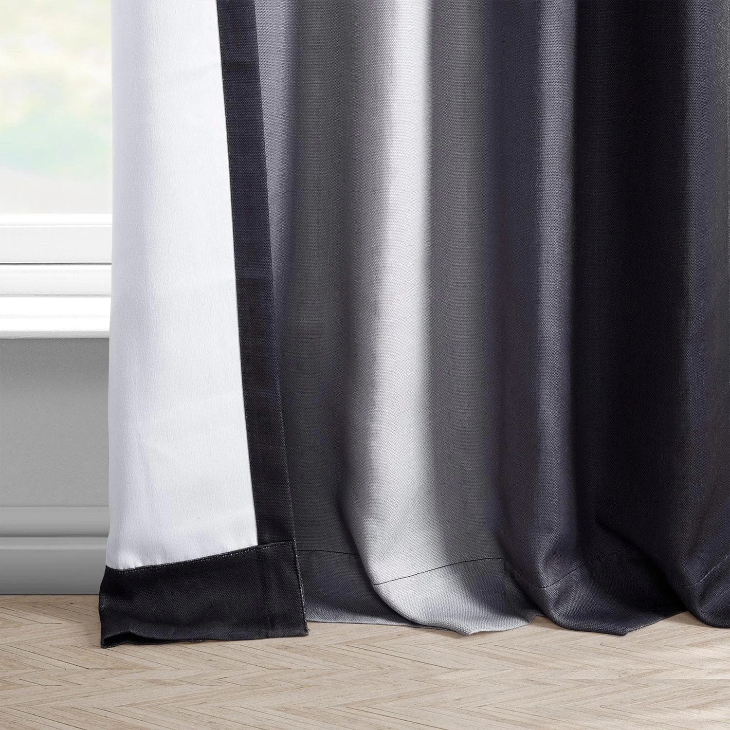 Parallel Grey is a tall ombre design fading grey to off white and fading back to grey. This linen-look curtain is unlined and backed with off white fabric.