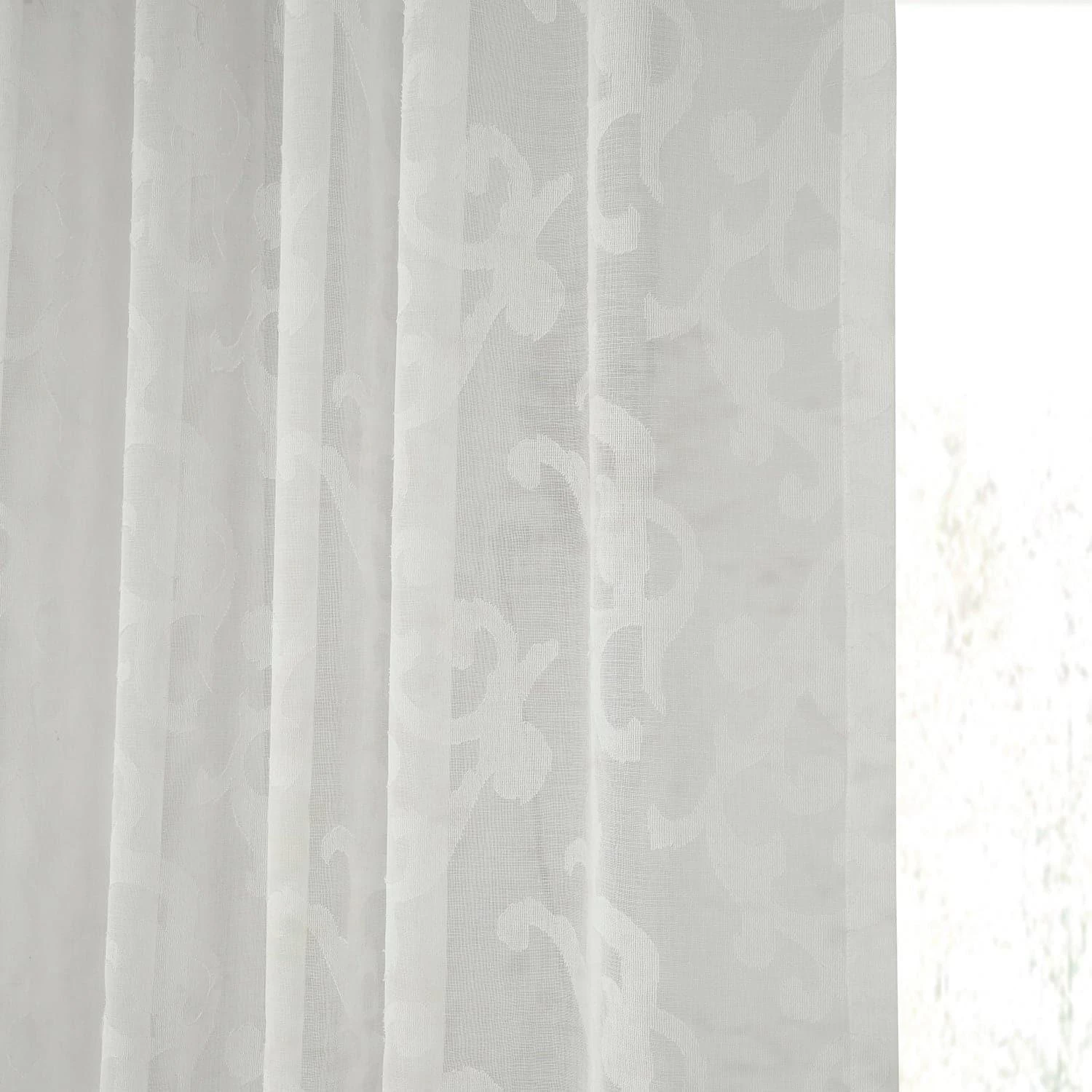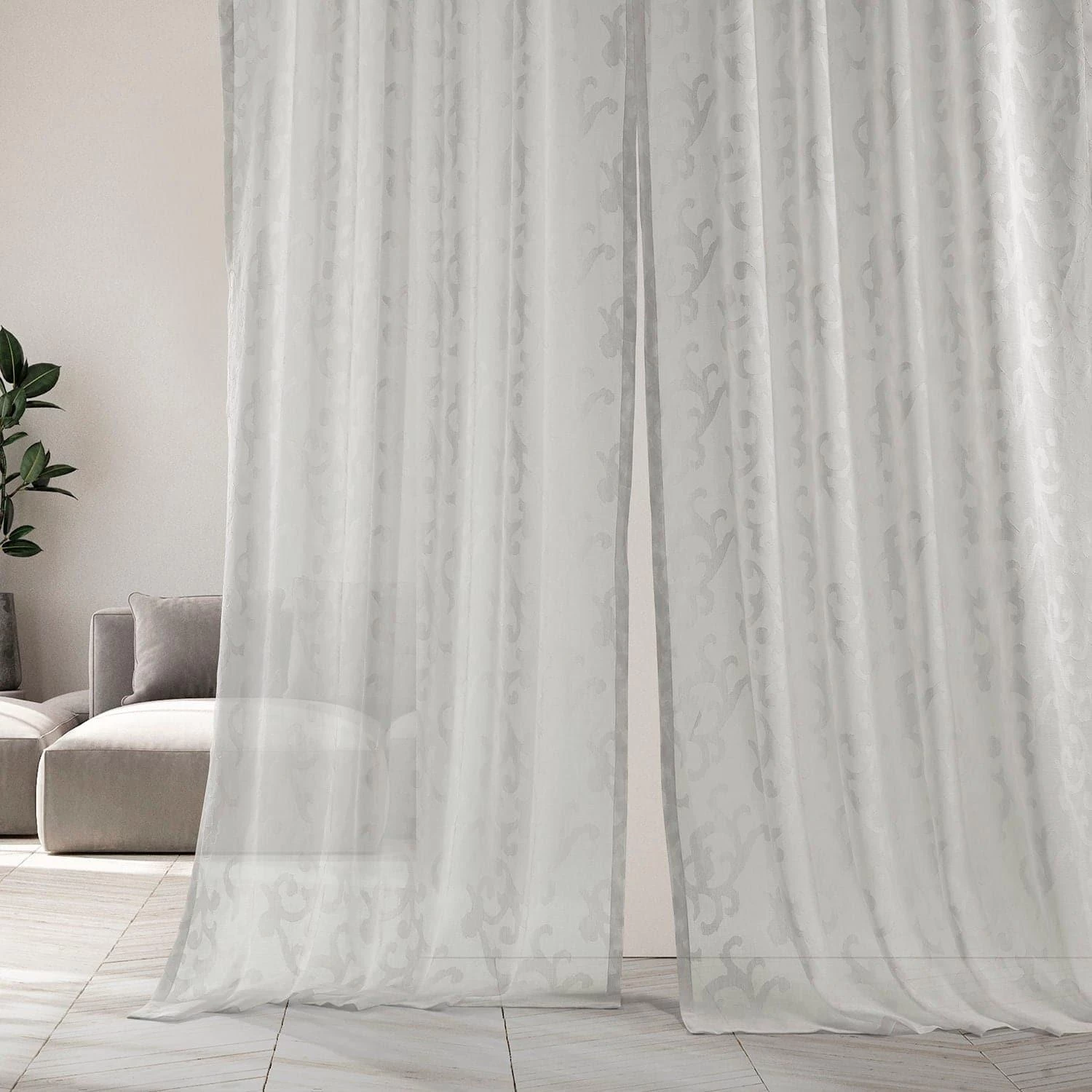Paris Scroll Patterned Faux Linen Sheer Curtain