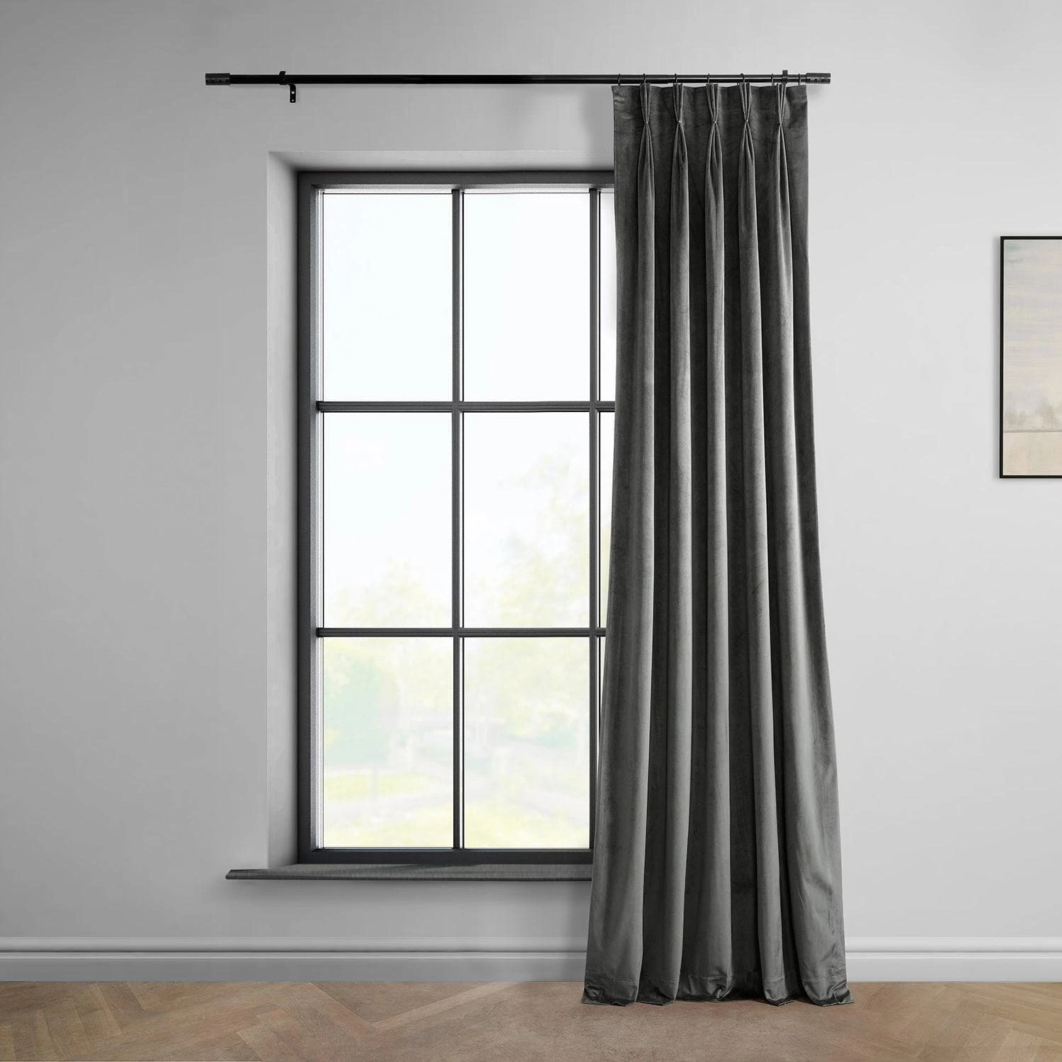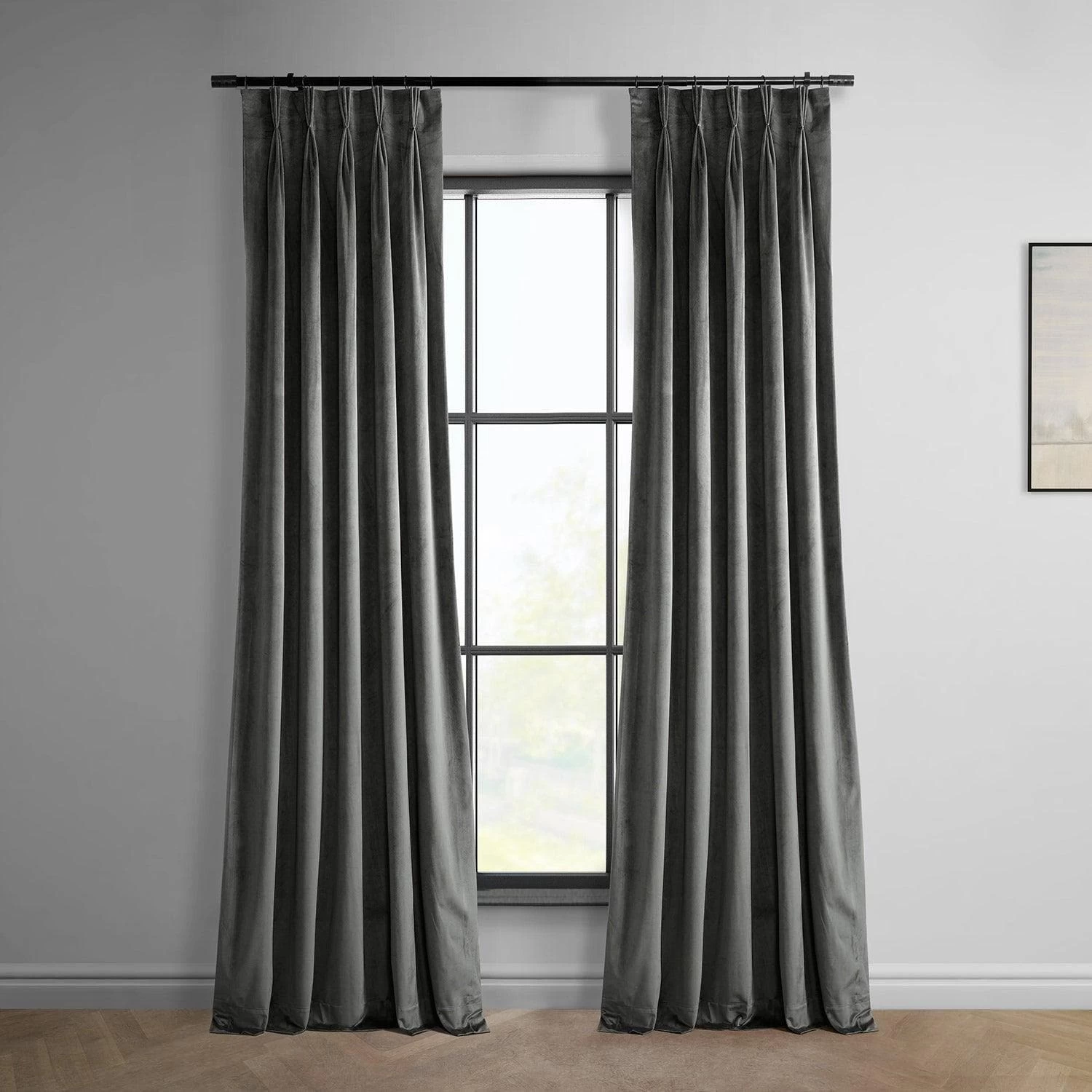 Pepper Grey French Pleat Heritage Plush Velvet Curtain