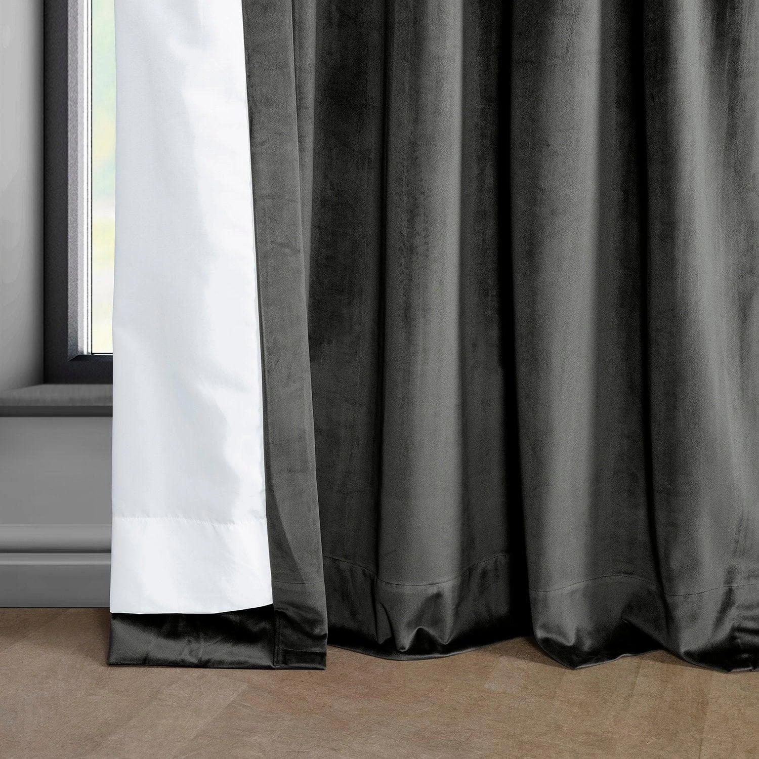 Made To Order: Heritage Pepper Grey is a delicious grey solid. This pleated plush velvet curtain is lined with off white fabric.