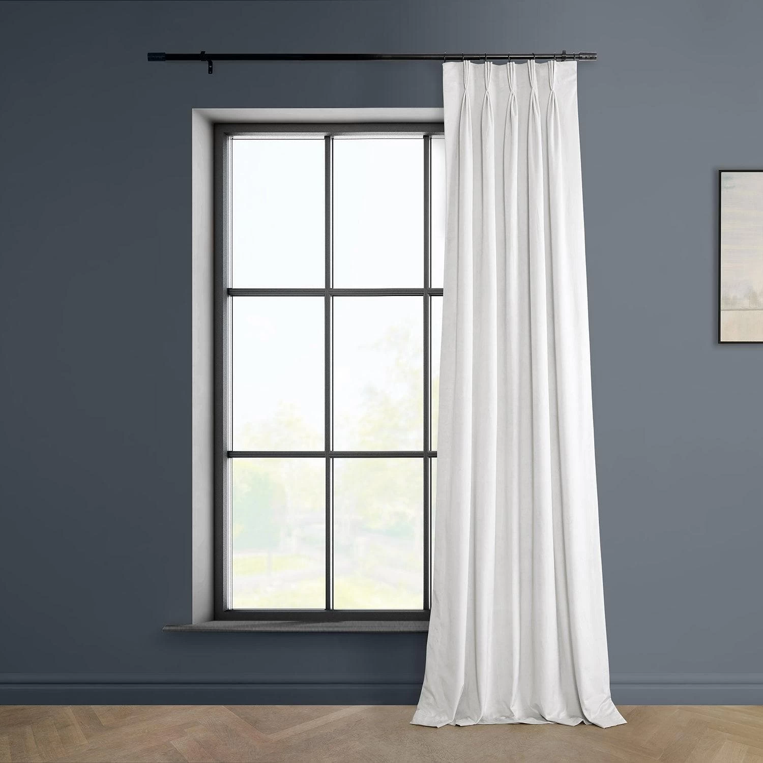Made To Order: Heritage Pillow White is a splendid off white. This pleated plush velvet curtain is lined with off white fabric.