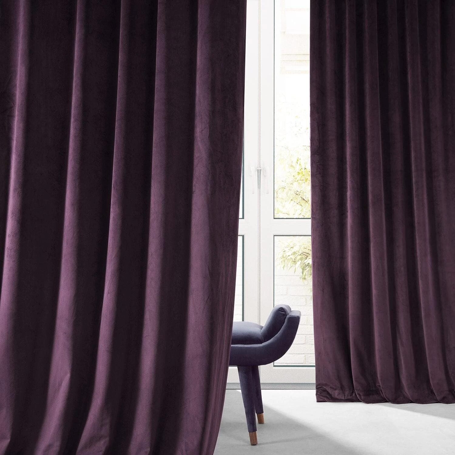 Plum Blossom is a juicy deep plum. This plush velvet curtain is lined with off white blackout fabric.