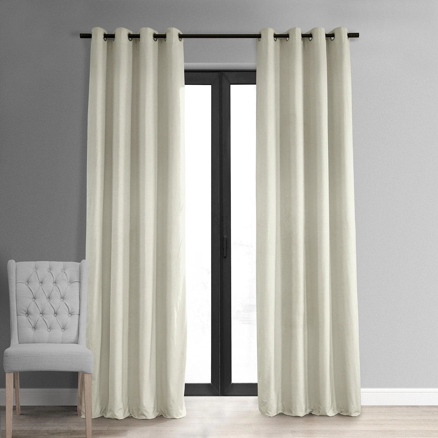 Porcelain White Grommet Signature Velvet Blackout Curtain