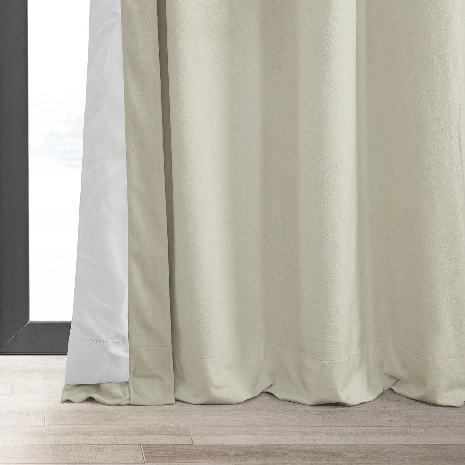 Porcelain White is a calm off white. This luxurious velvet curtain is lined with off white thermal fabric.