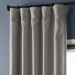 Clay Extra Wide Textured Faux Linen Room Darkening Curtain