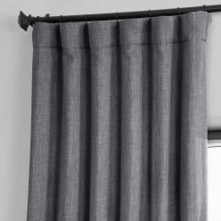 Dark Gravel Textured Faux Linen Room Darkening Curtain