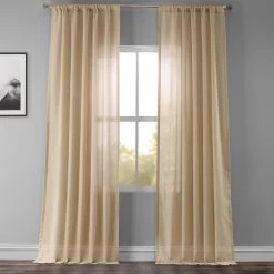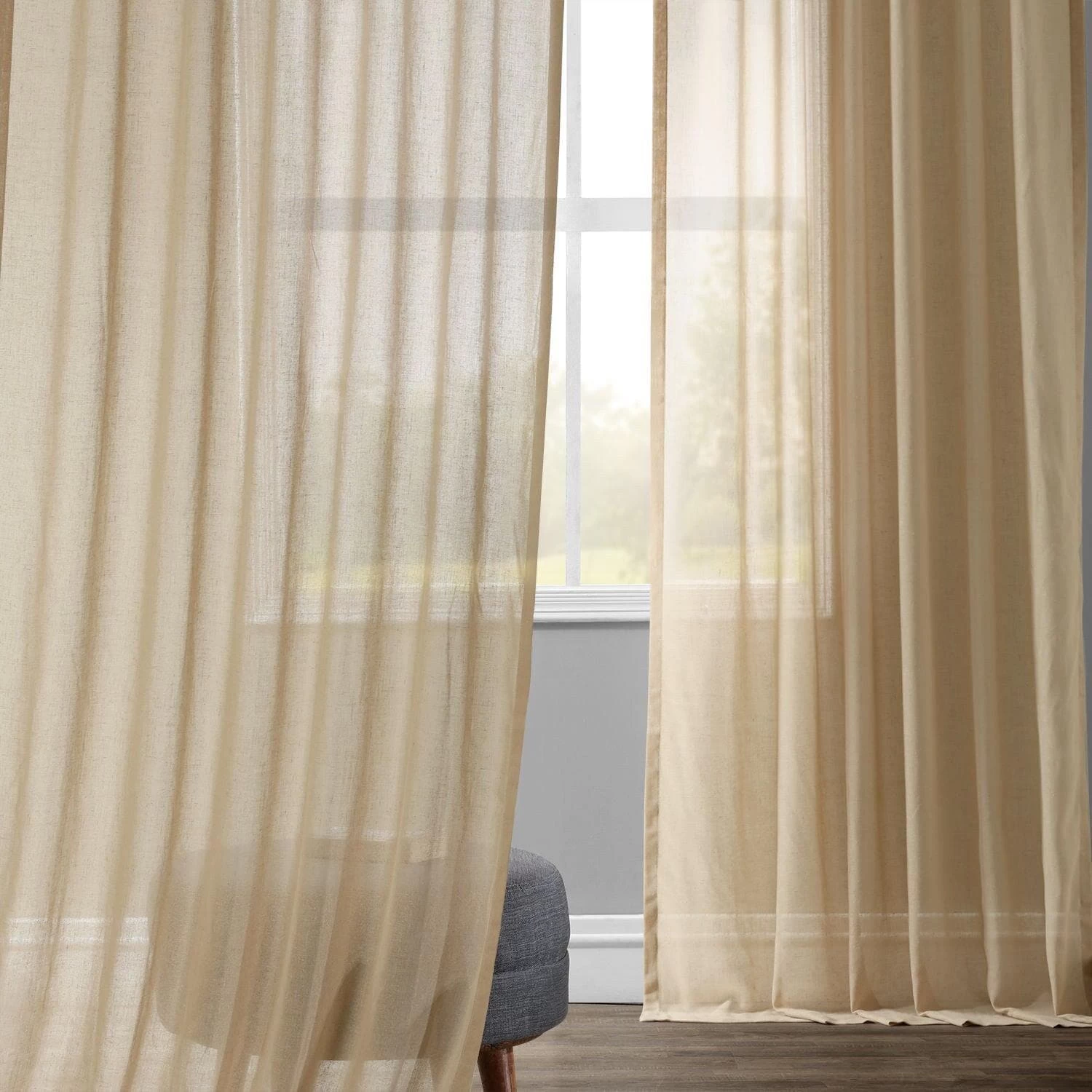 Raffia Tan Textured Faux Linen Sheer Curtain