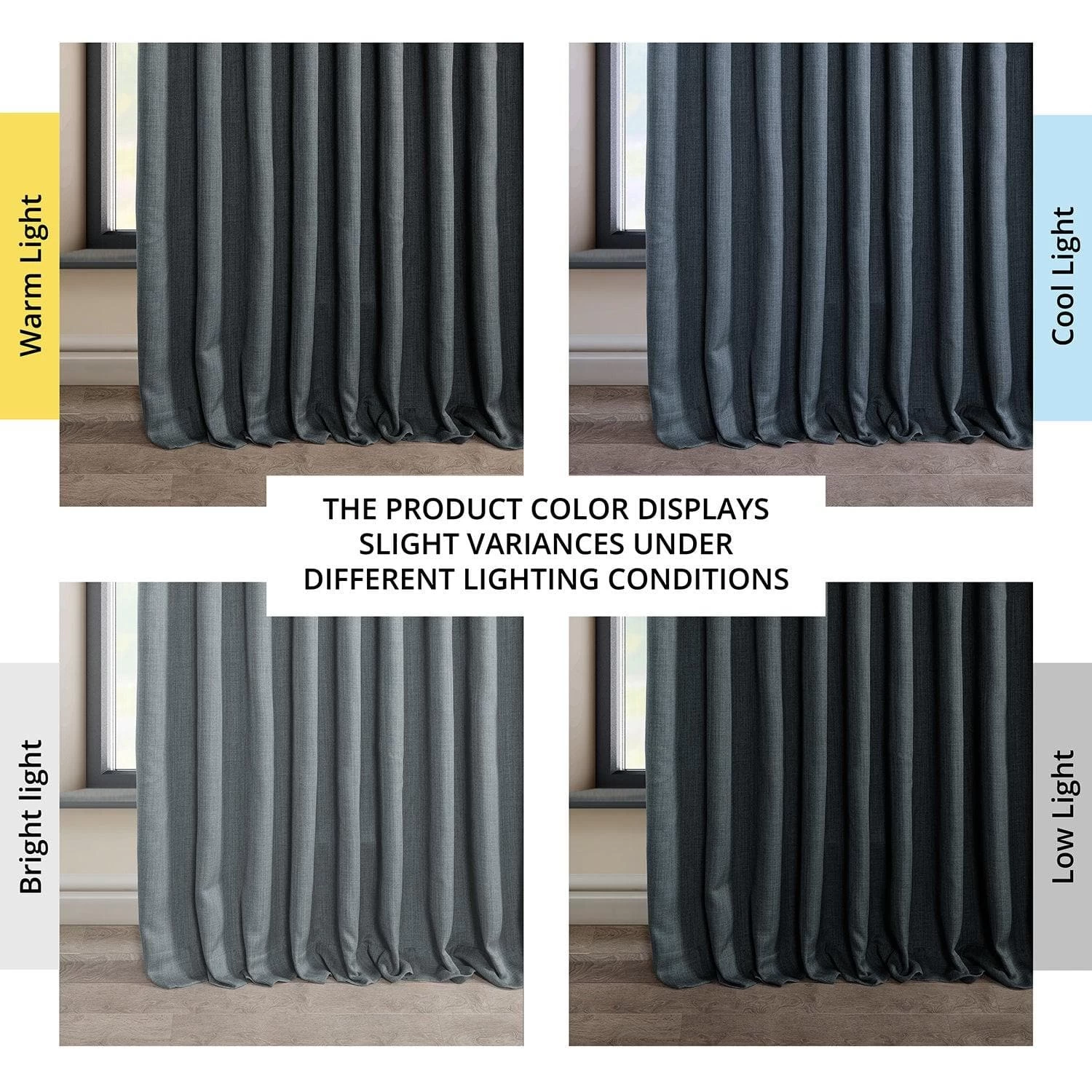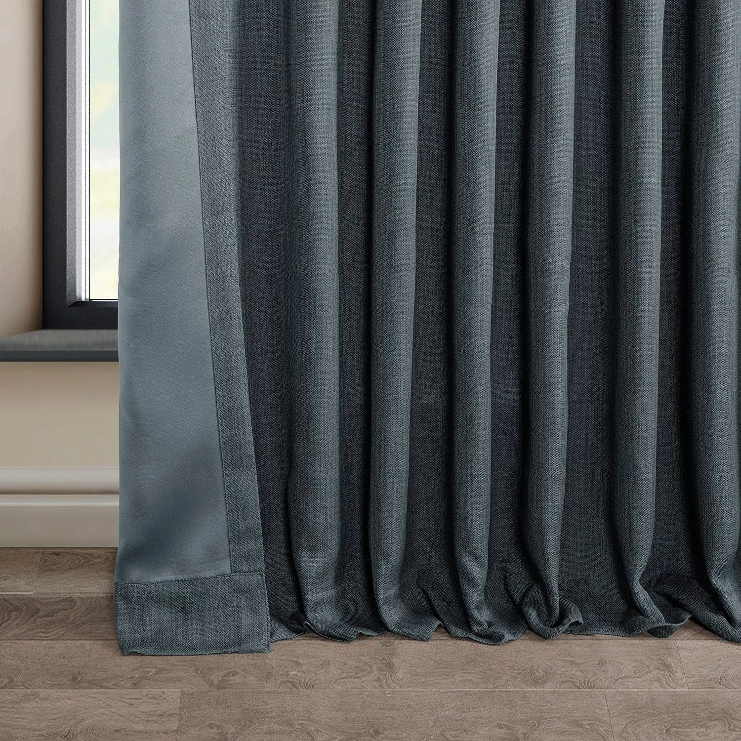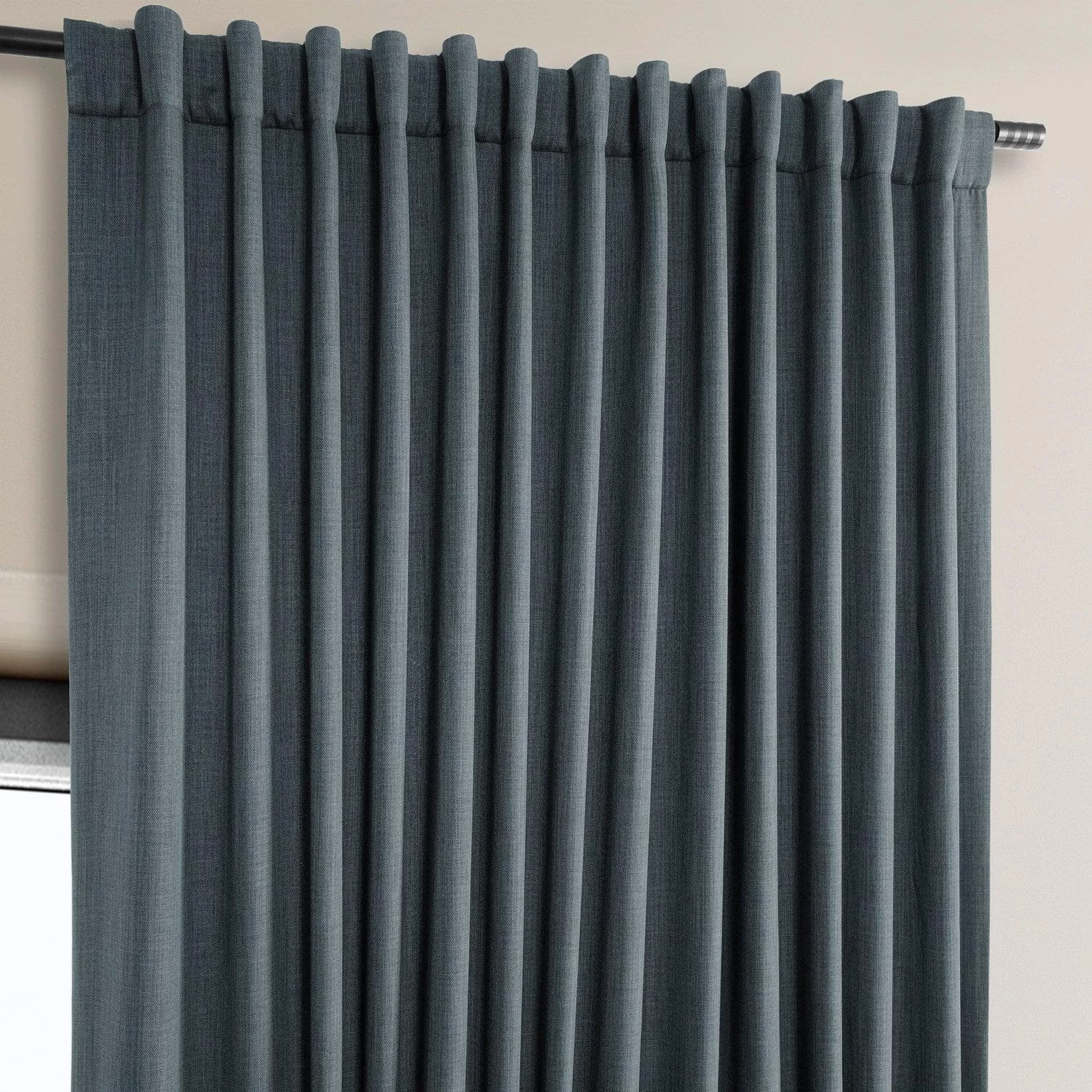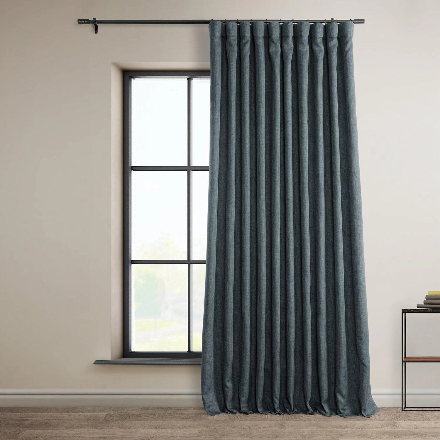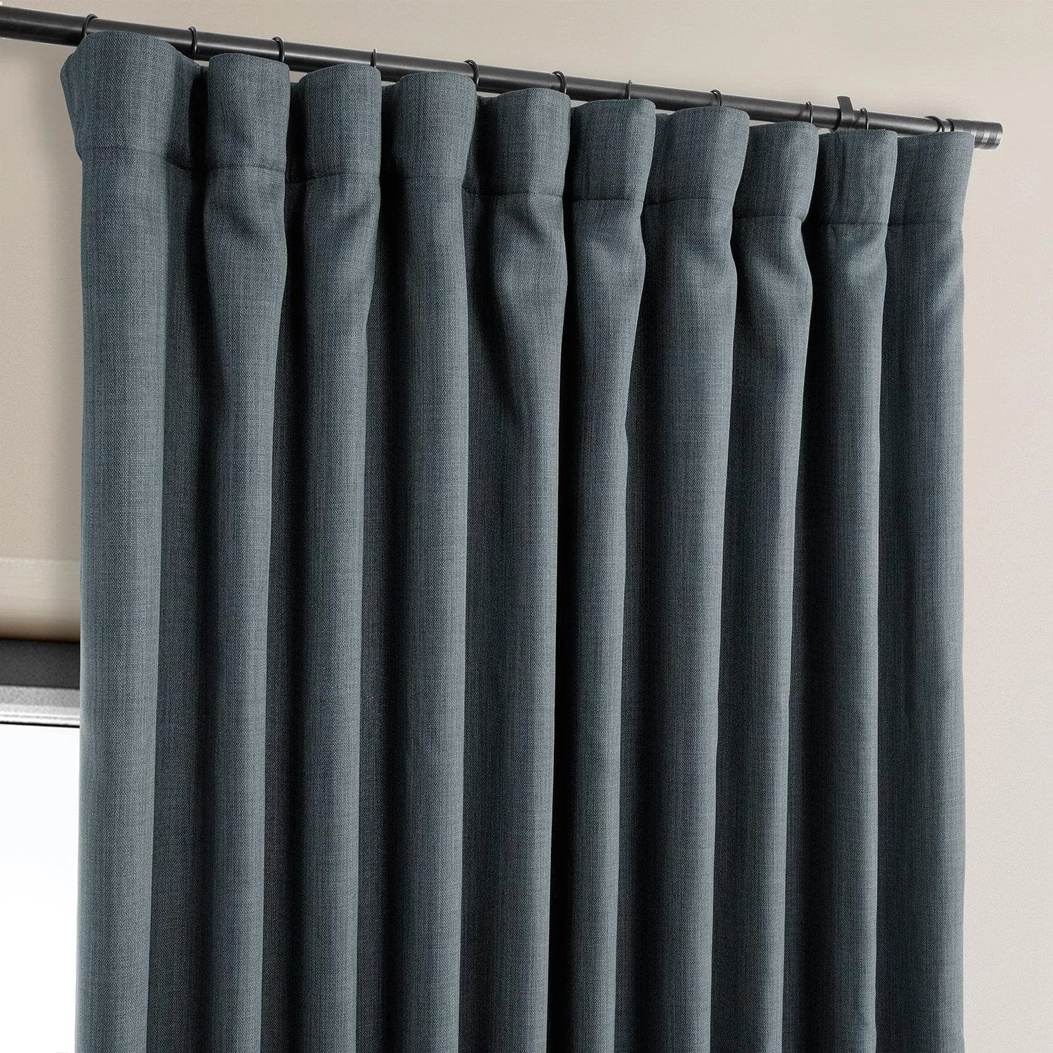 Reverie Blue Extra Wide Textured Faux Linen Room Darkening Curtain