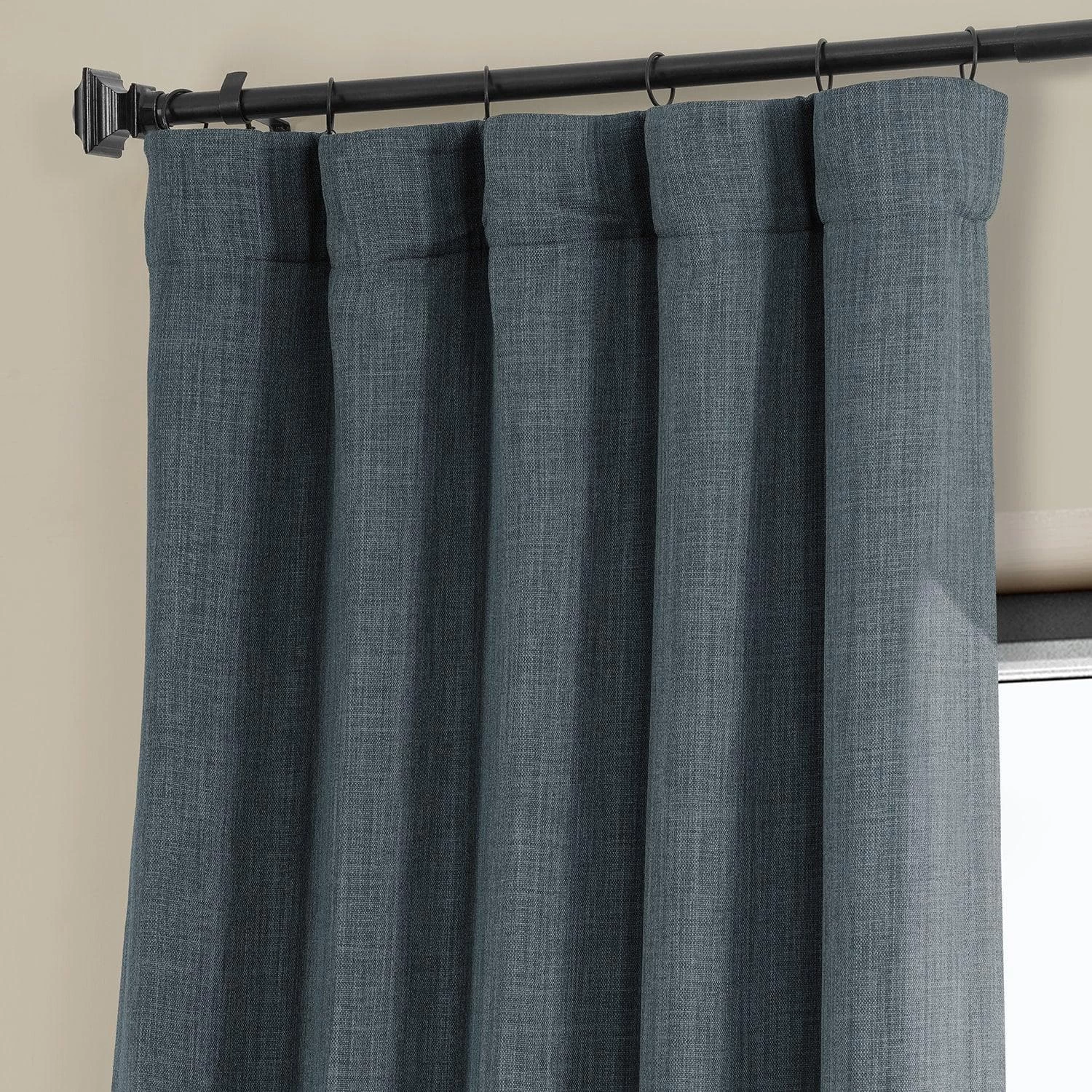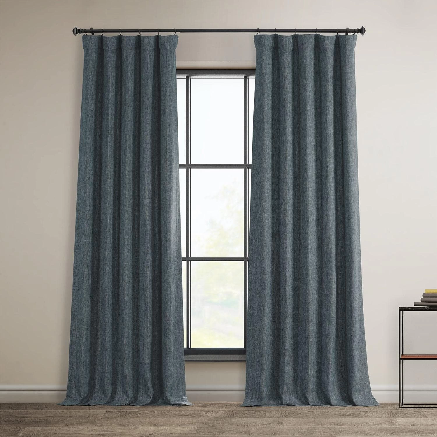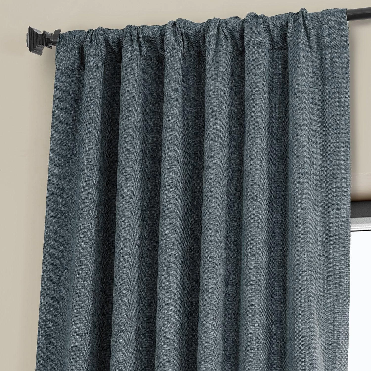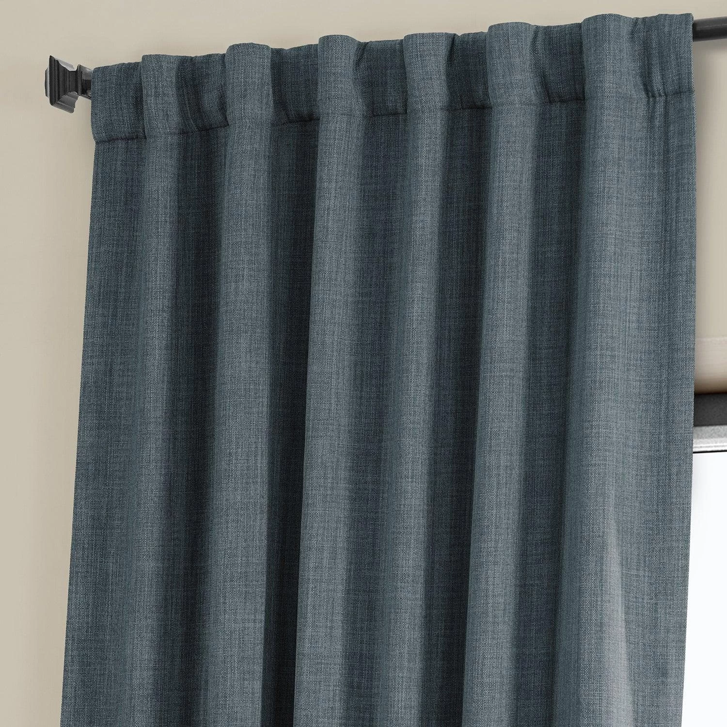 Reverie Blue Textured Faux Linen Room Darkening Curtain