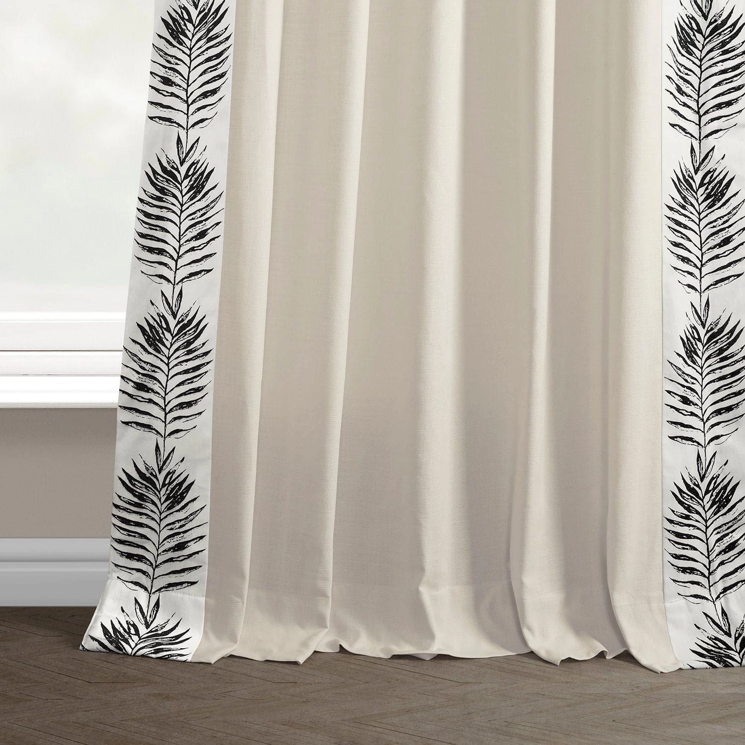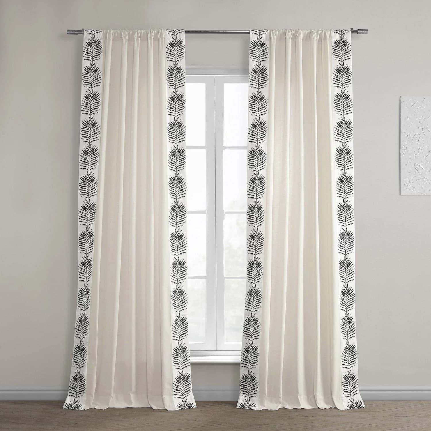 Sago Black side border frames a classic off-white panel. This decorative cotton curtain is unlined and has no backing.
