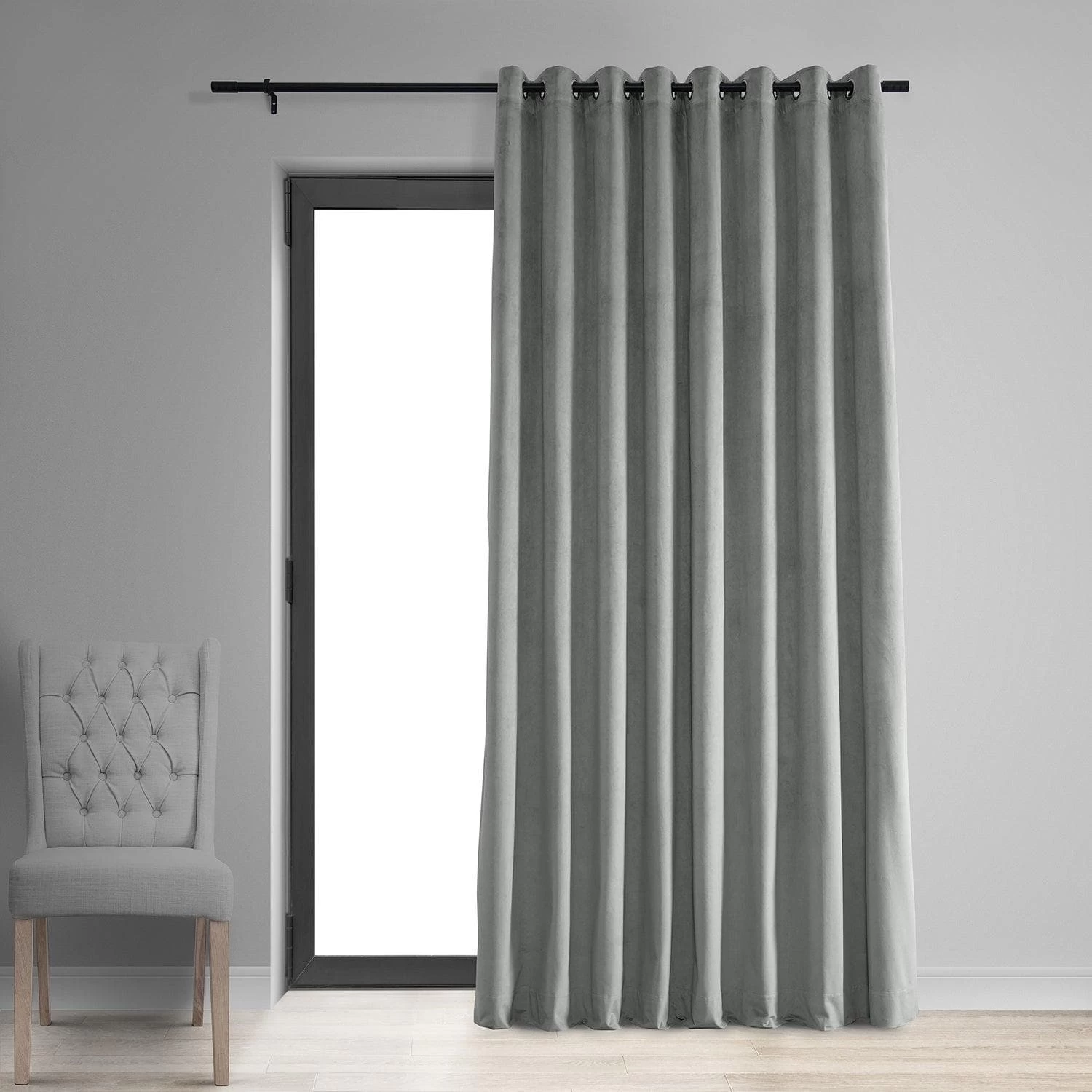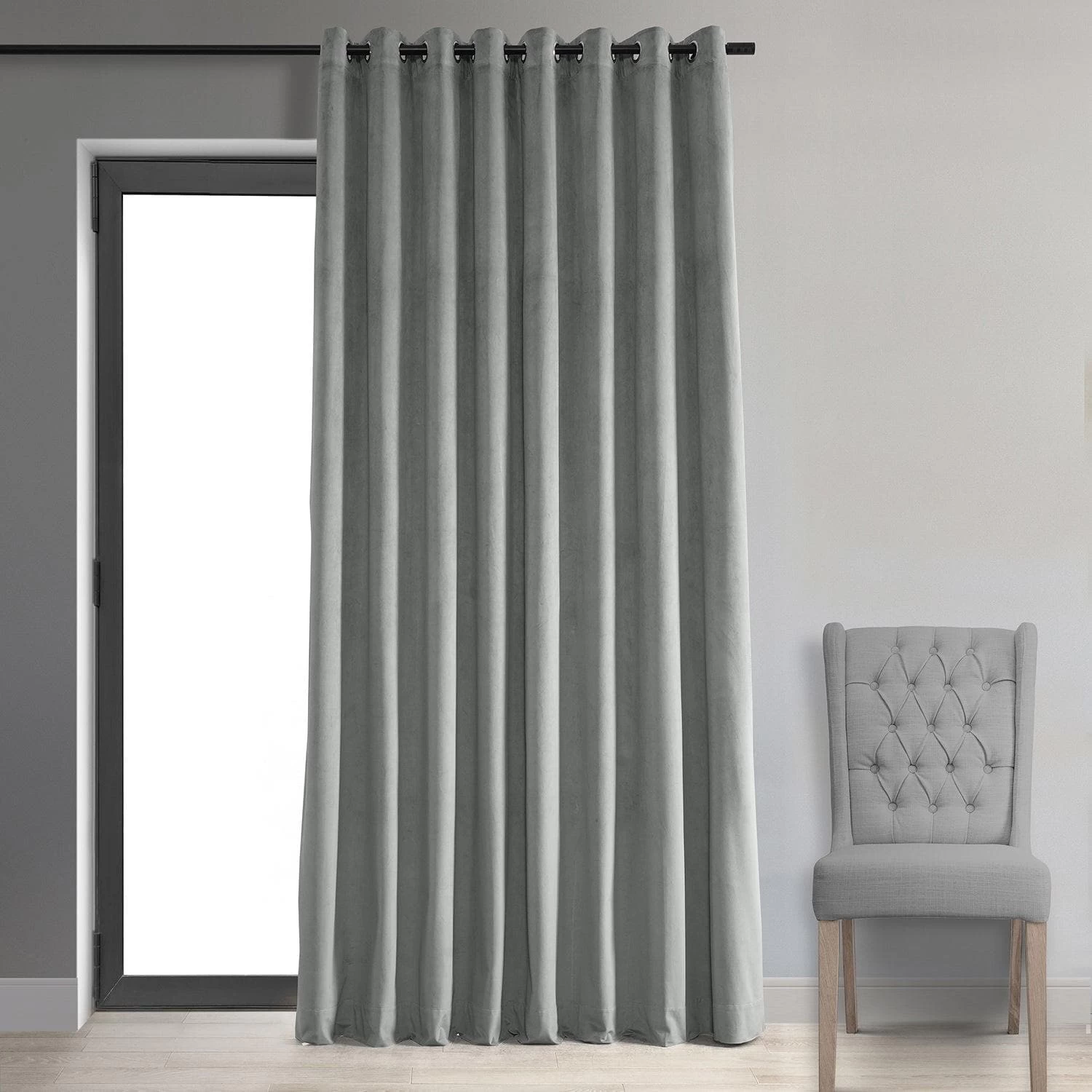 Silver Grey Grommet Signature Extra Wide Velvet Blackout Curtain