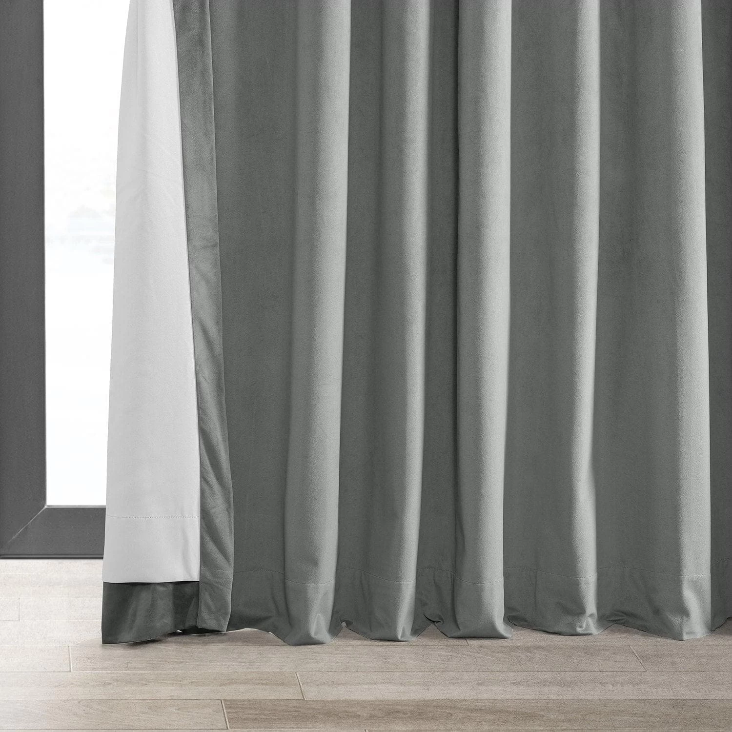 Silver Grey is a non-metallic light grey. This luxurious velvet curtain is lined with off white thermal fabric.