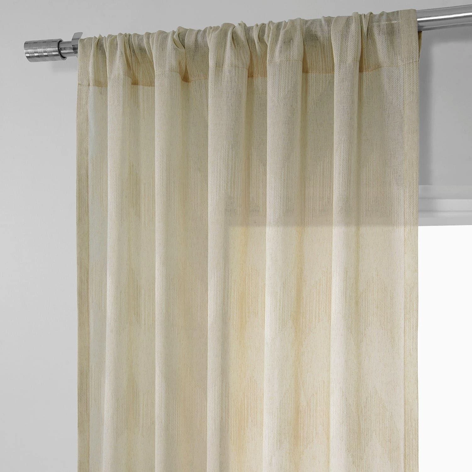 Sirius Beige Patterned Faux Linen Sheer Curtain