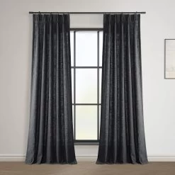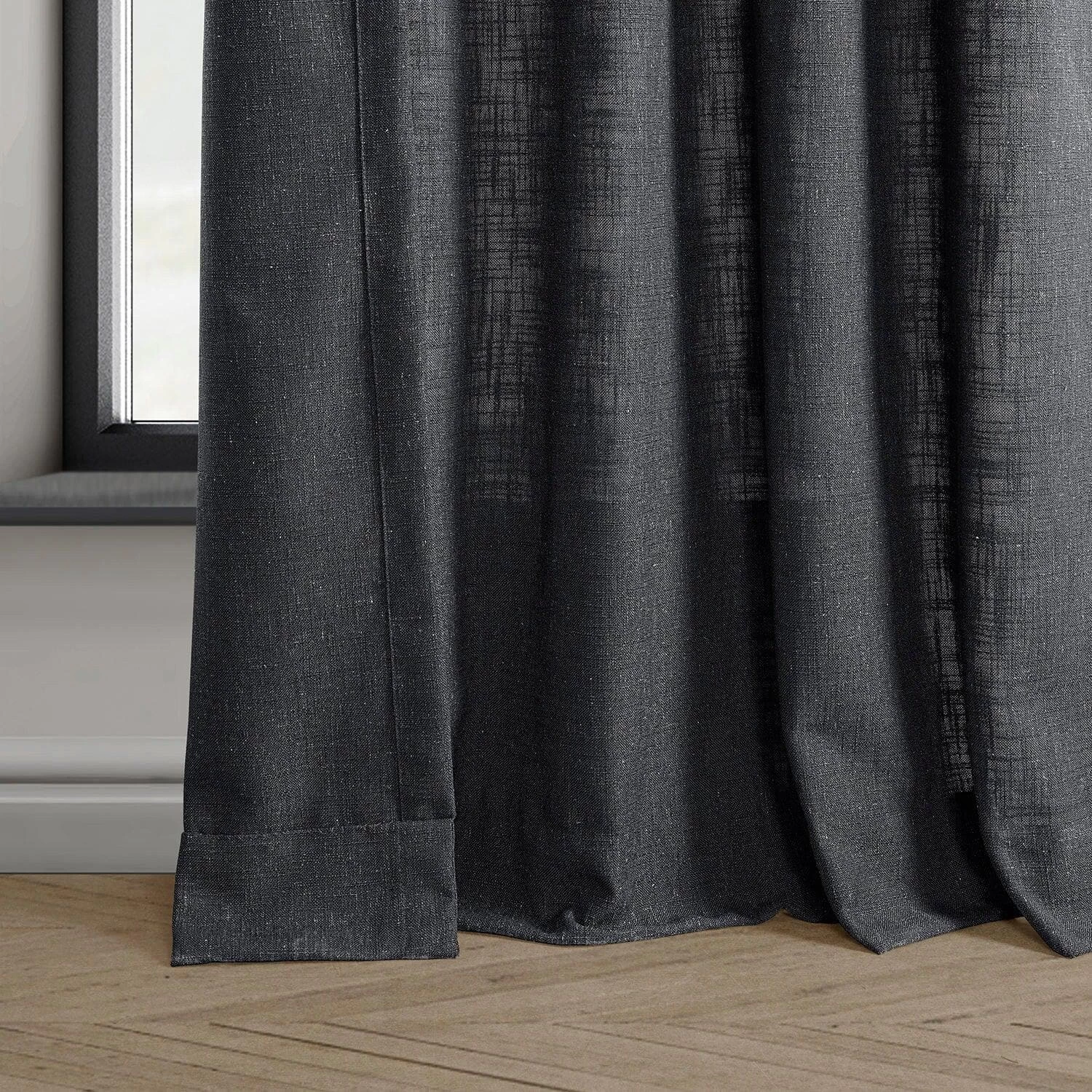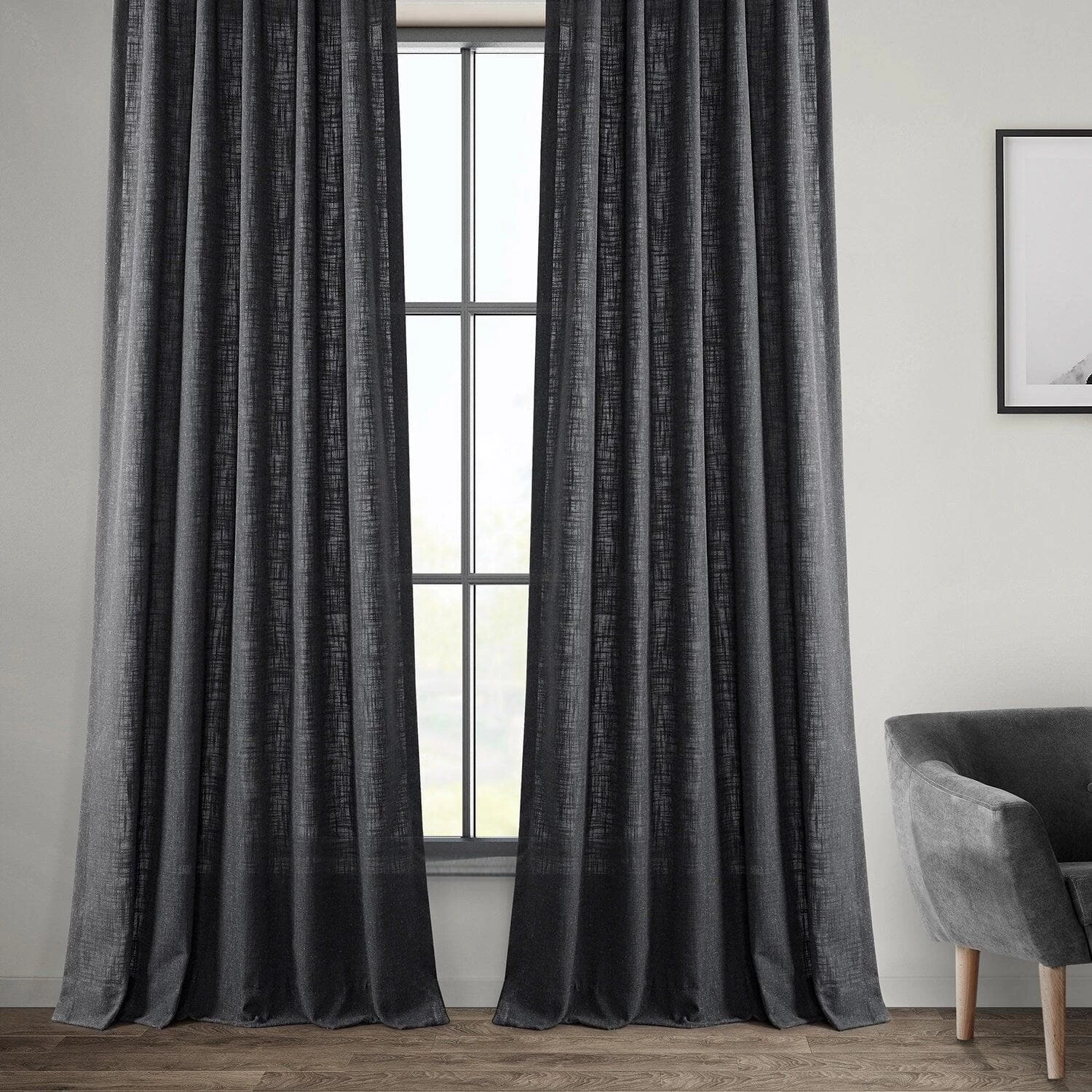 Made To Order: Slate Grey is a deep grey-on-grey near black crosshatch linen-like curtain. This linen-look curtain is unlined and has no backing.