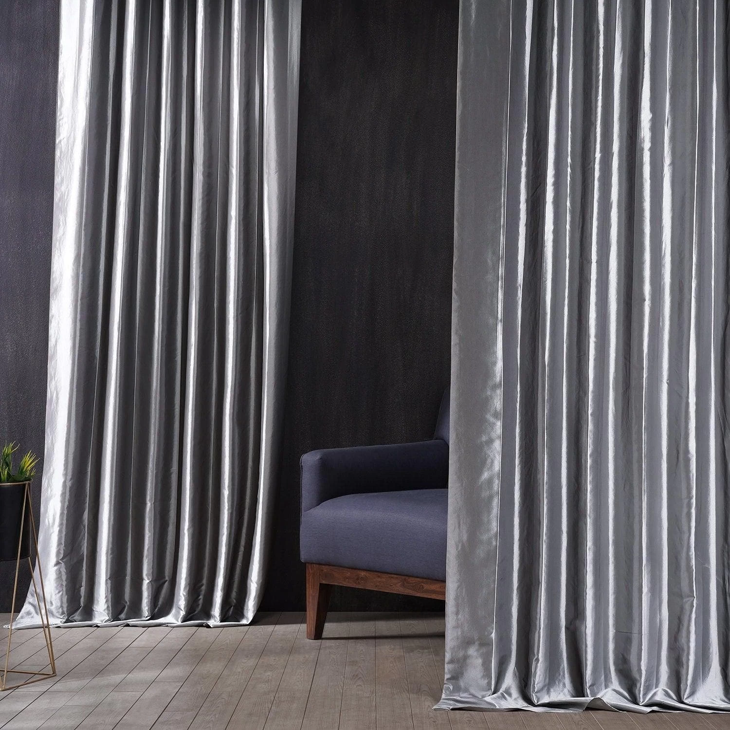 Social Silver Faux Silk Taffeta Hotel Blackout Curtain