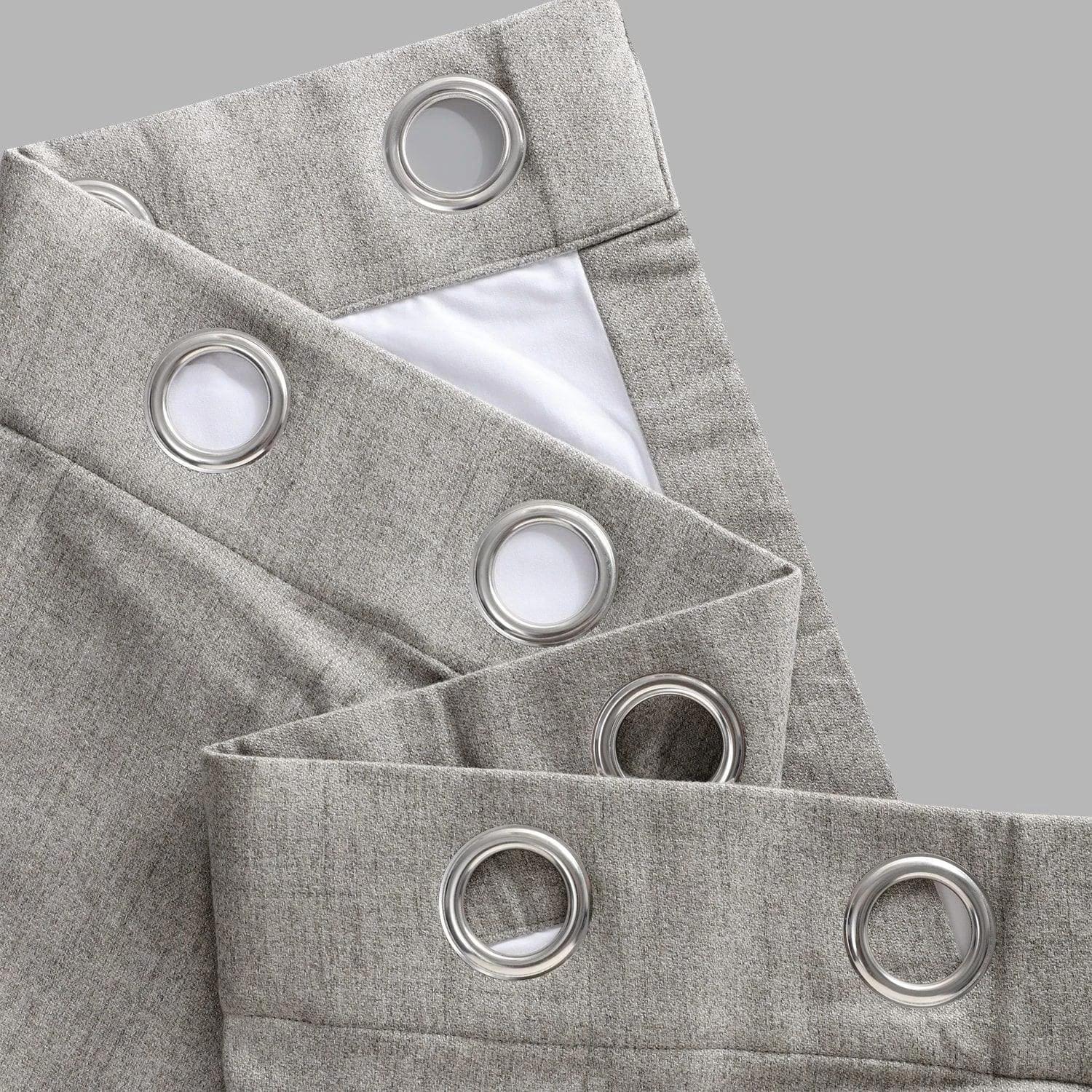 Steely Grey Grommet Heathered Woolen Weave Curtain