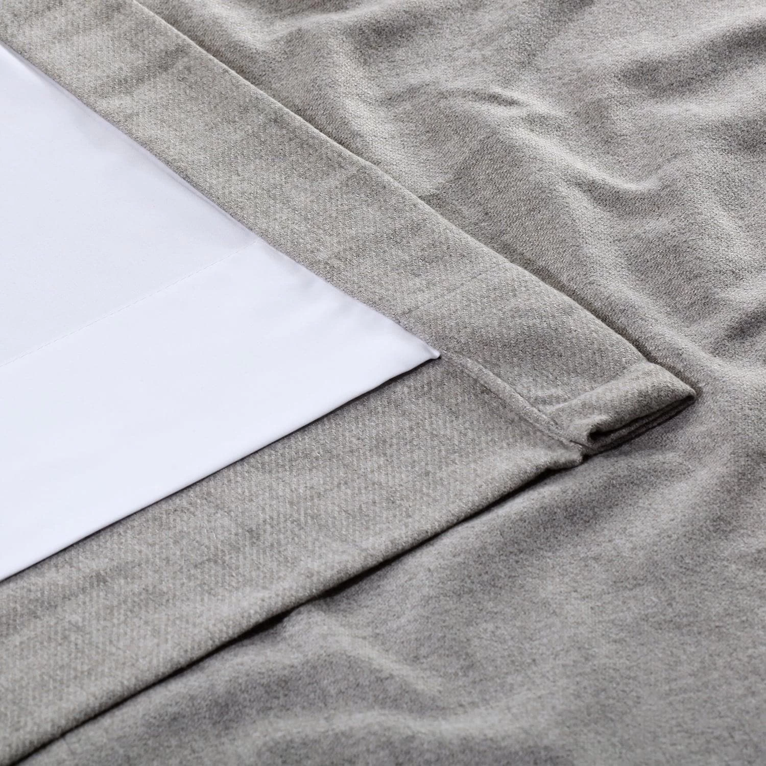 Heathered Steel Grey is a fuzzy light grey weave. This soft nap woven curtain is lined with off white fabric.