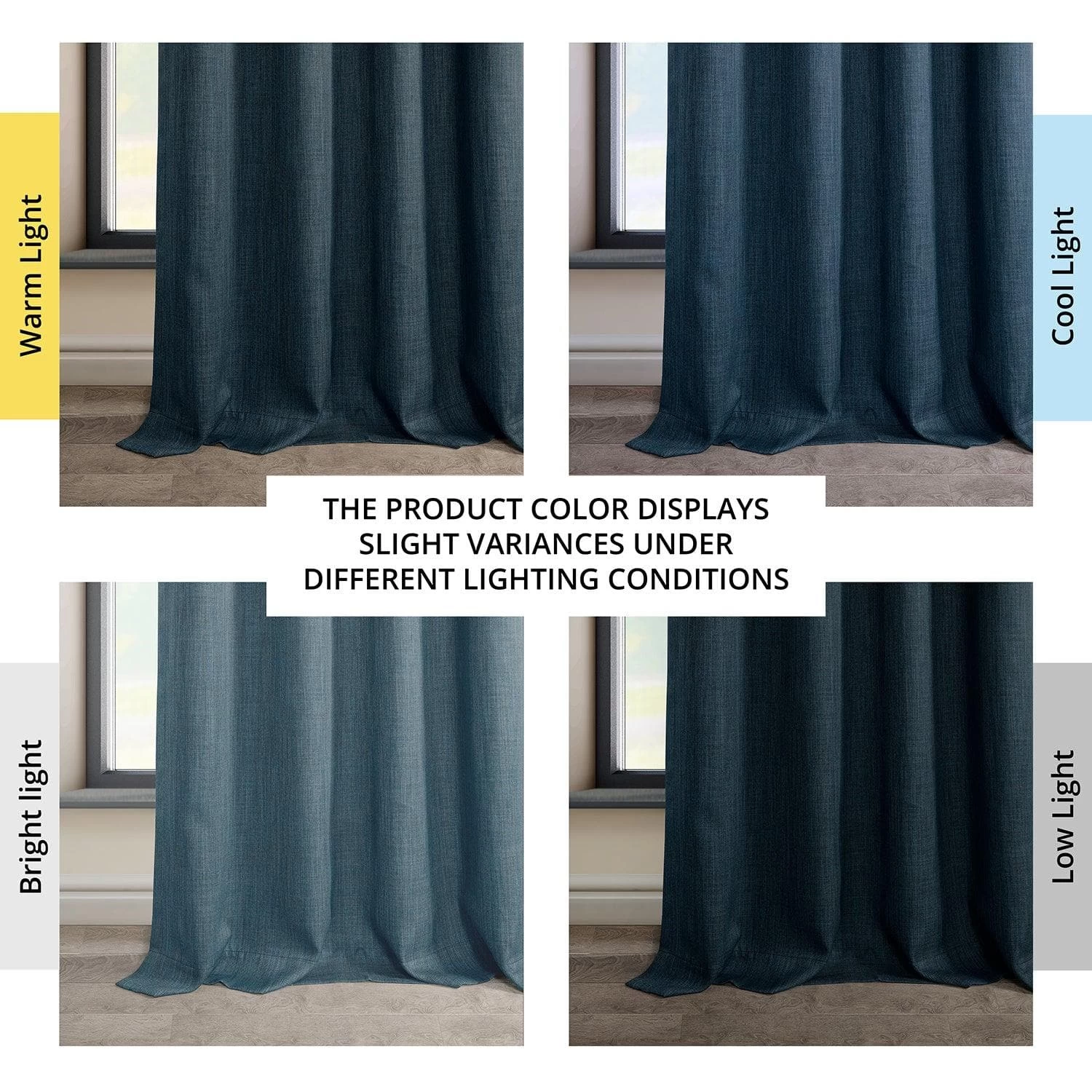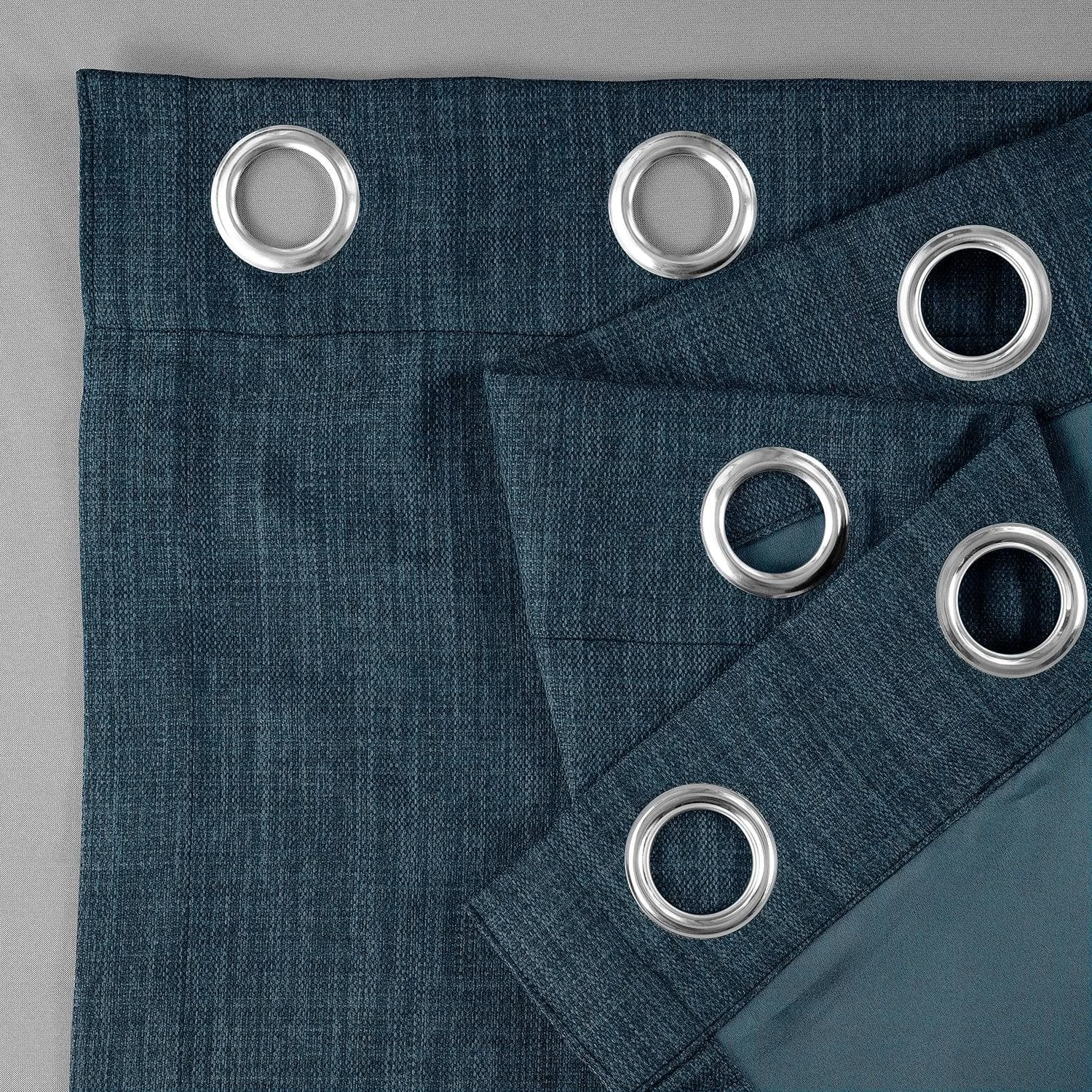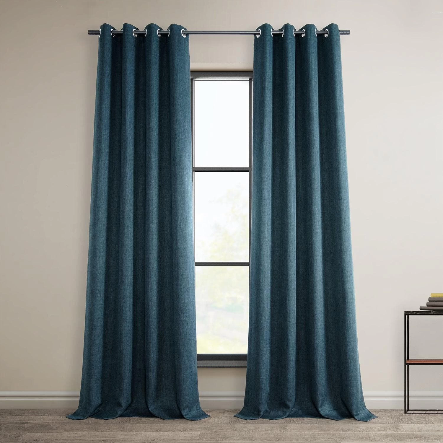 Story Blue Grommet Textured Faux Linen Room Darkening Curtain