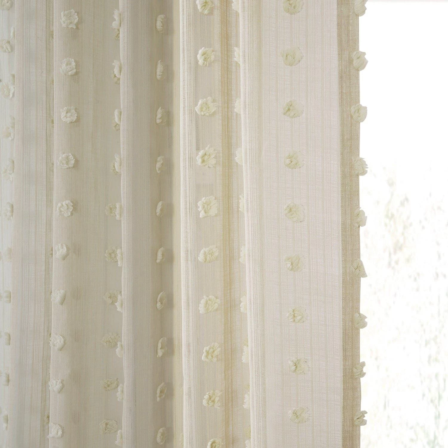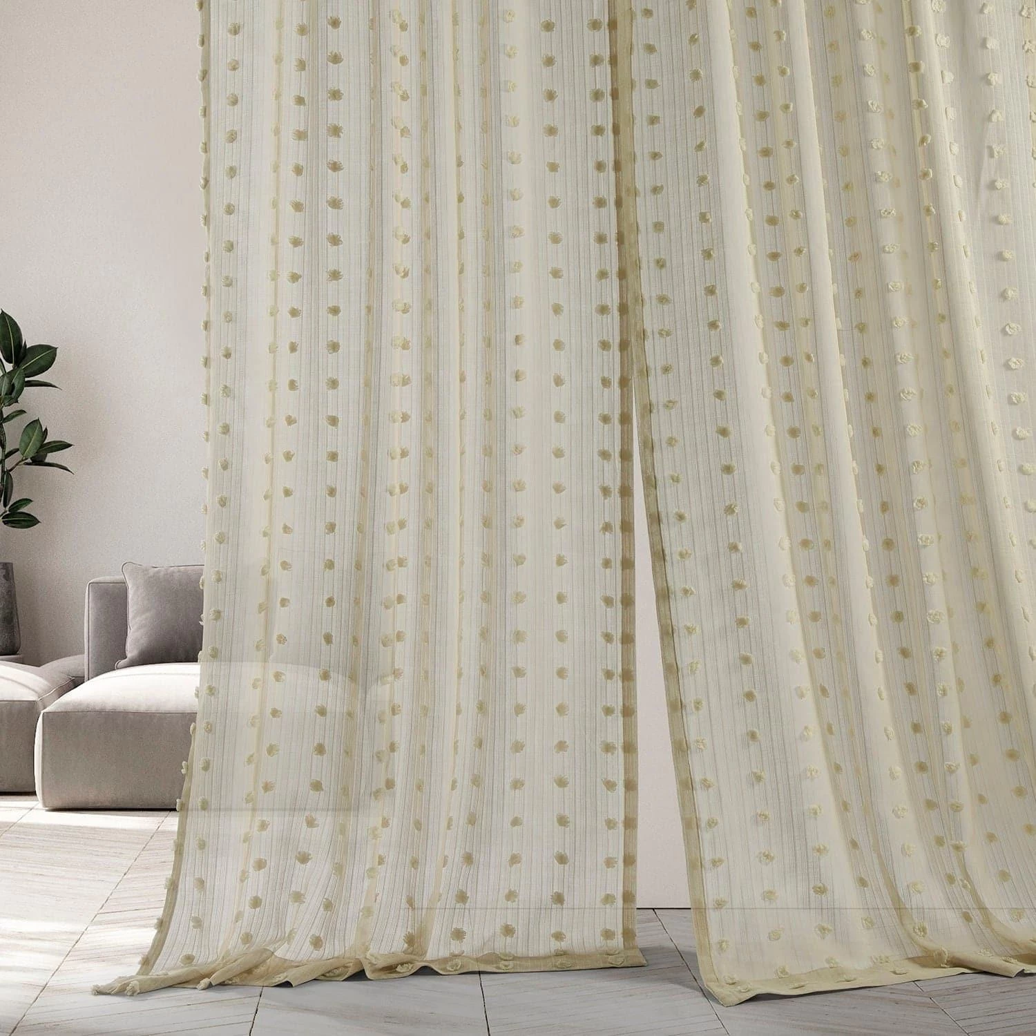 Strasbourg Dot Beige Patterned Faux Linen Sheer Curtain