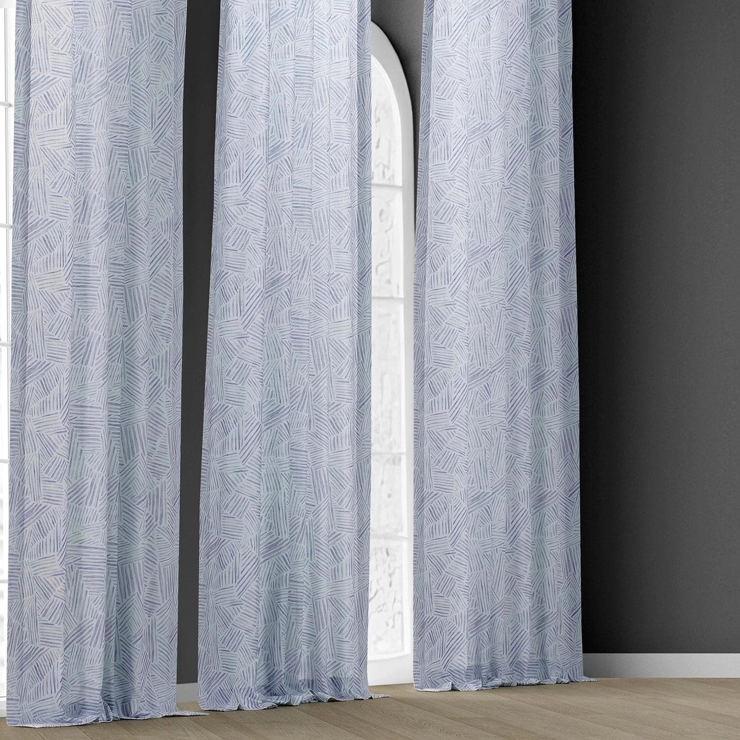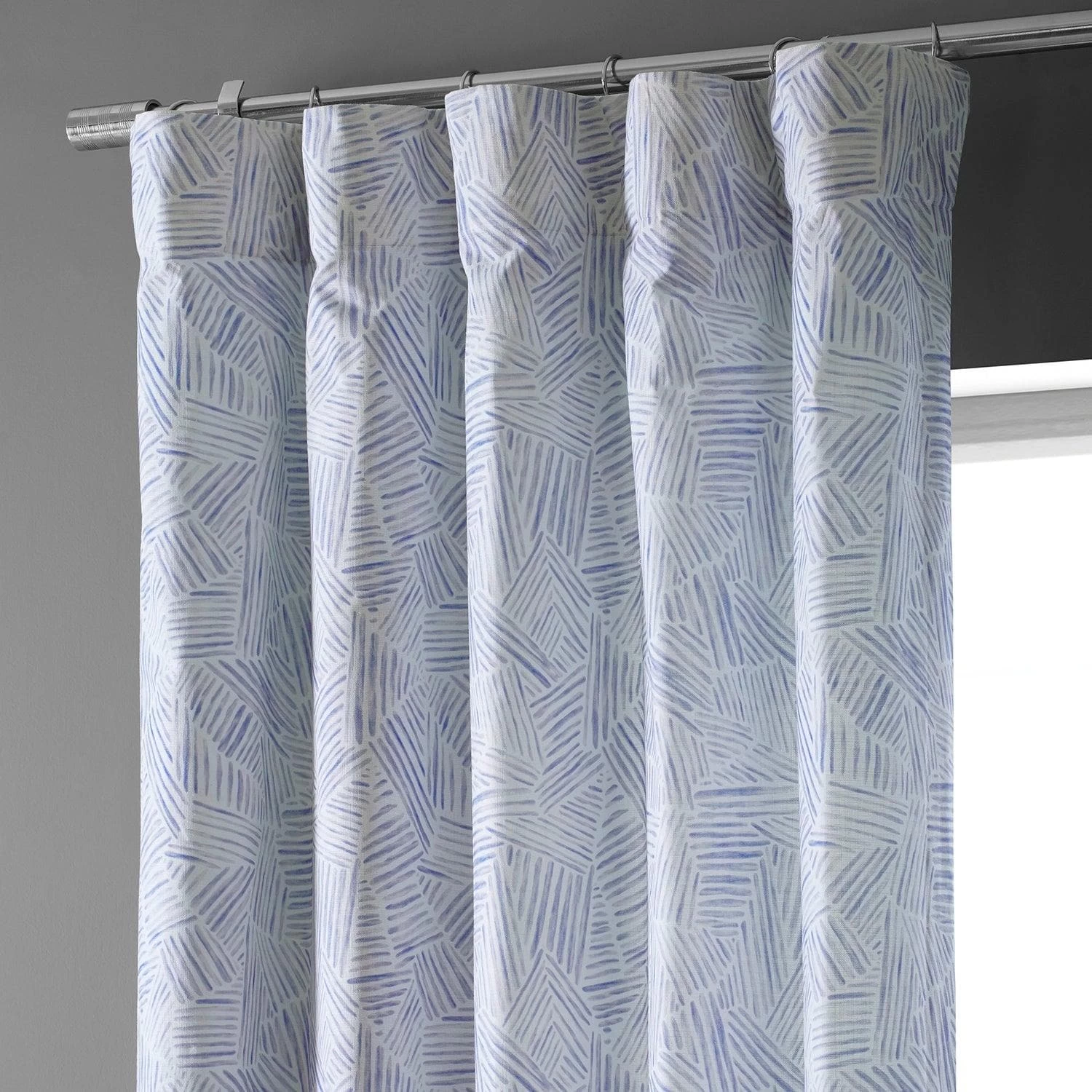 Strokes Light Blue Textured Printed Cotton Light Filtering Curtain