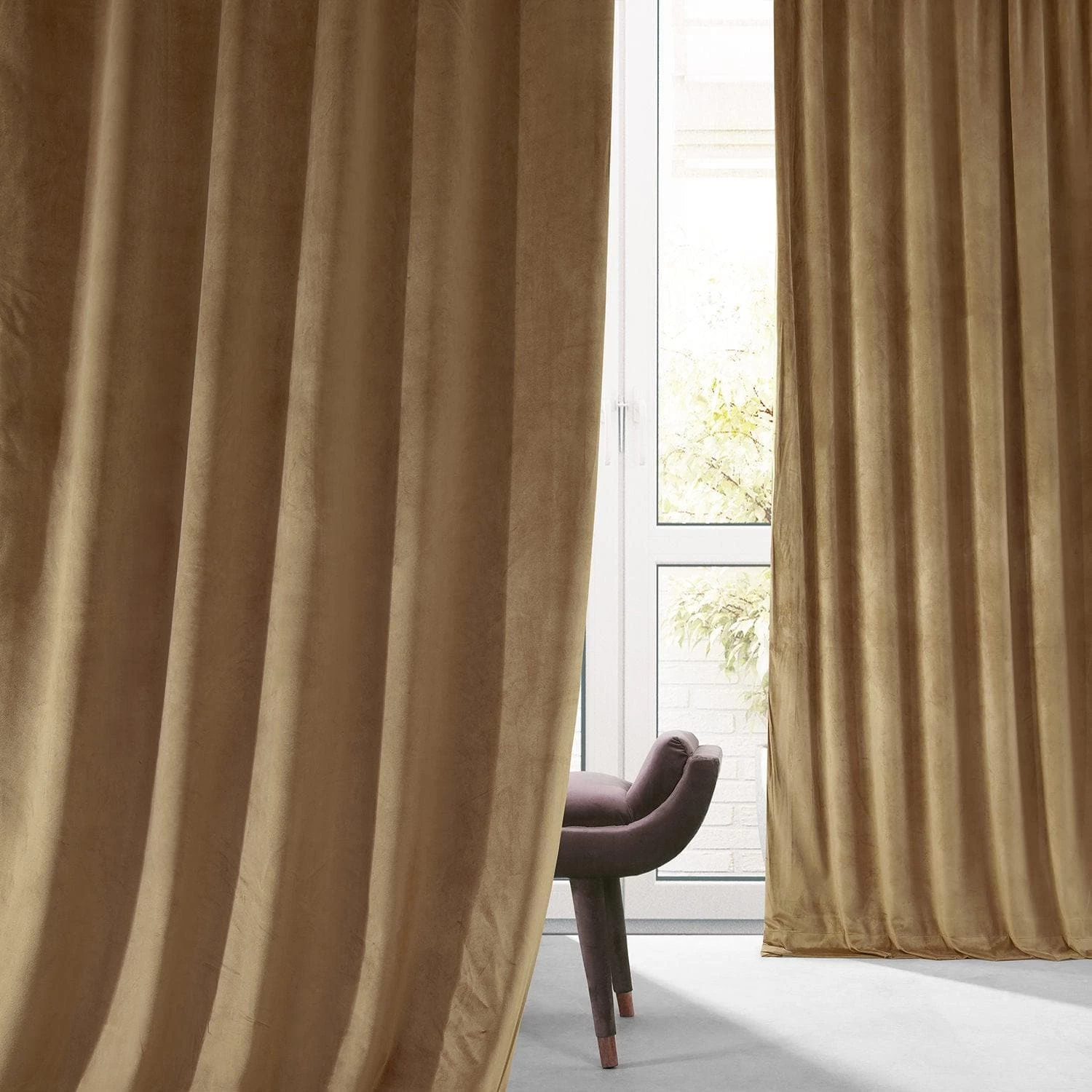 Sweet And Spicy Rum is a rich golden brown. This plush velvet curtain is lined with off white blackout fabric.