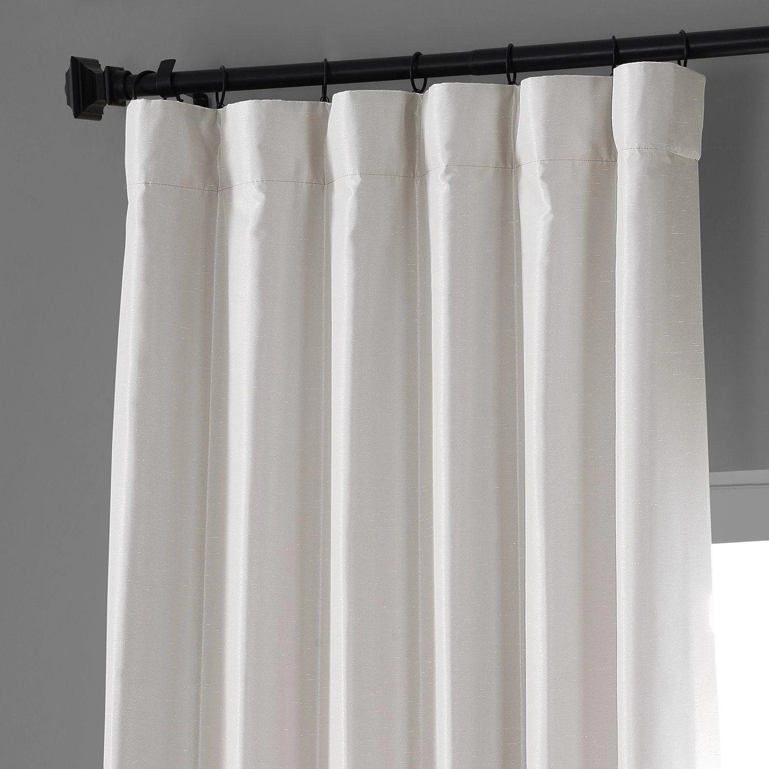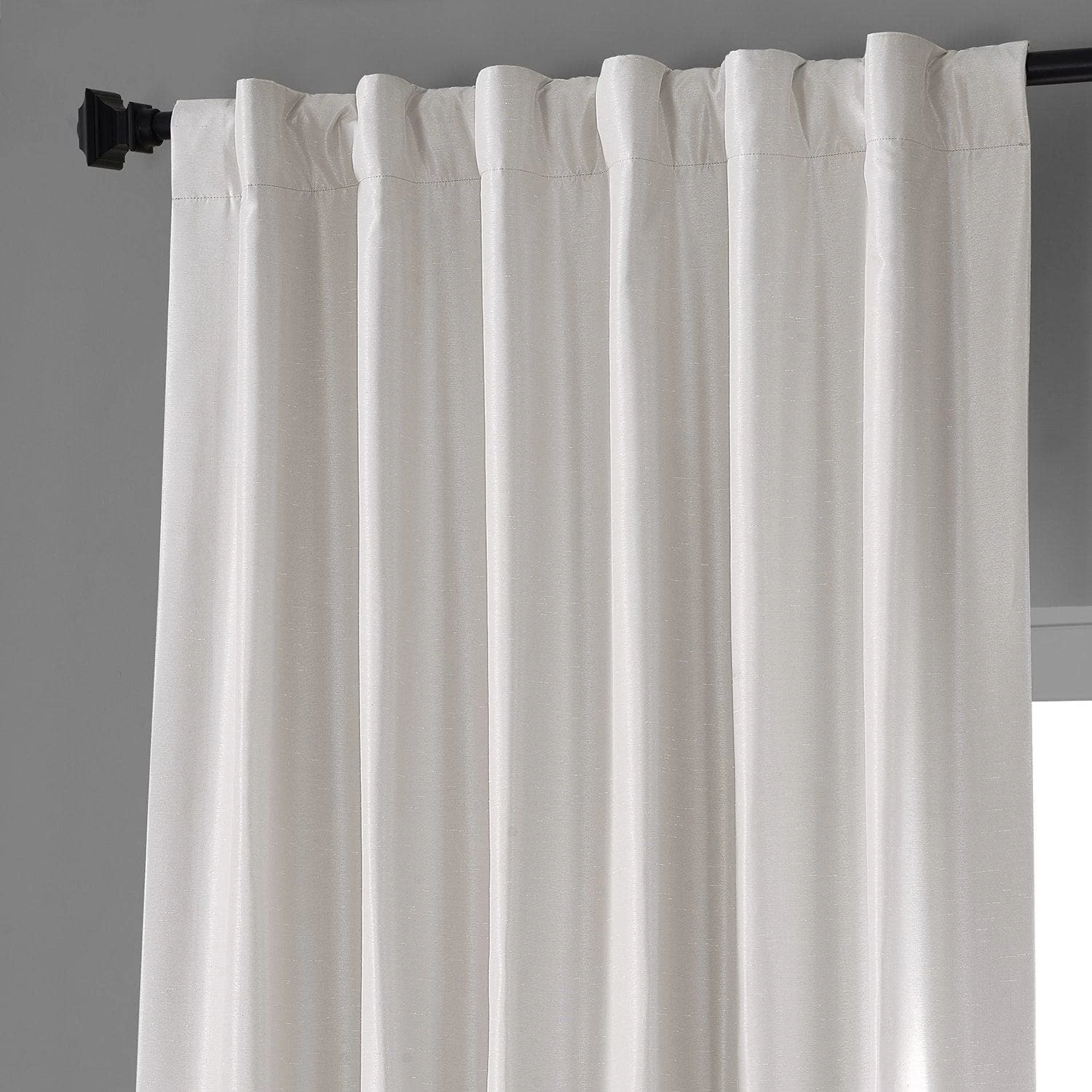 Vintage Sweet Cream is creamy off white with slubs scattered throughout. This iridescent silk-look curtain is lined with off white blackout fabric.