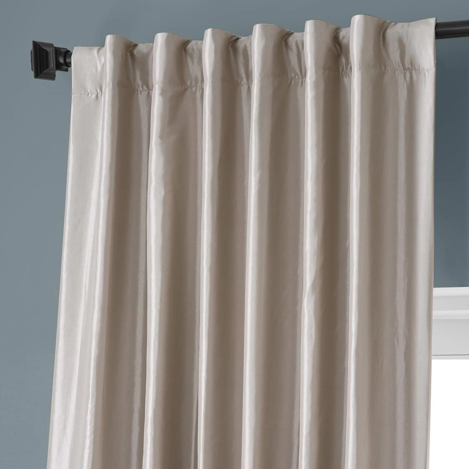 Virtual Beige Faux Silk Taffeta Hotel Blackout Curtain