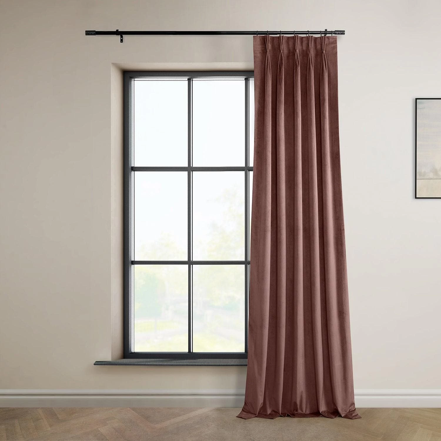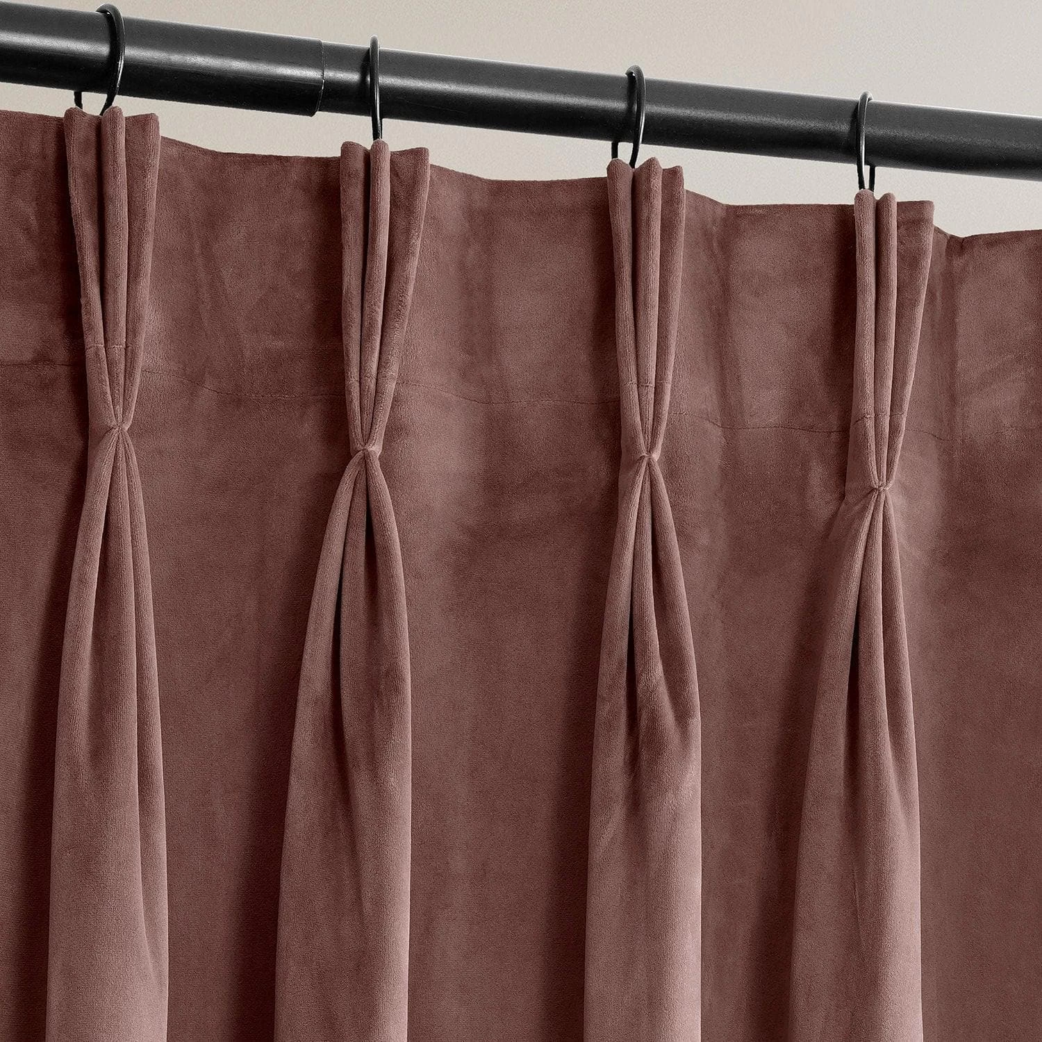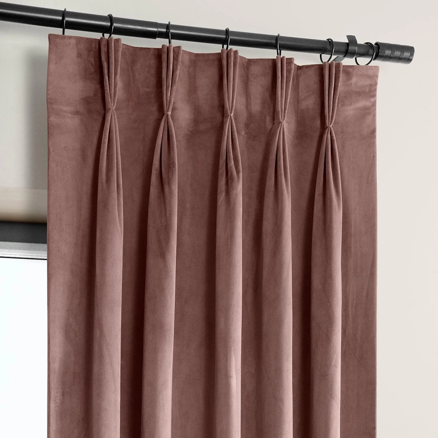 Made To Order: Heritage Wild Rose is a smokey deep mauve. This pleated plush velvet curtain is lined with off white fabric.